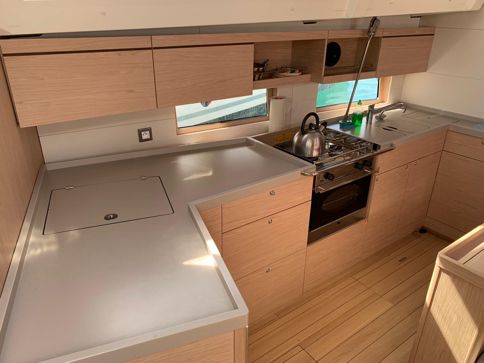 | Navigation | Barometer, Echolot, Fernglas, GPS mit Kartenplotter im Cockpit, Hafenhandbücher, Seekarten, Sumlog, Windmesser |