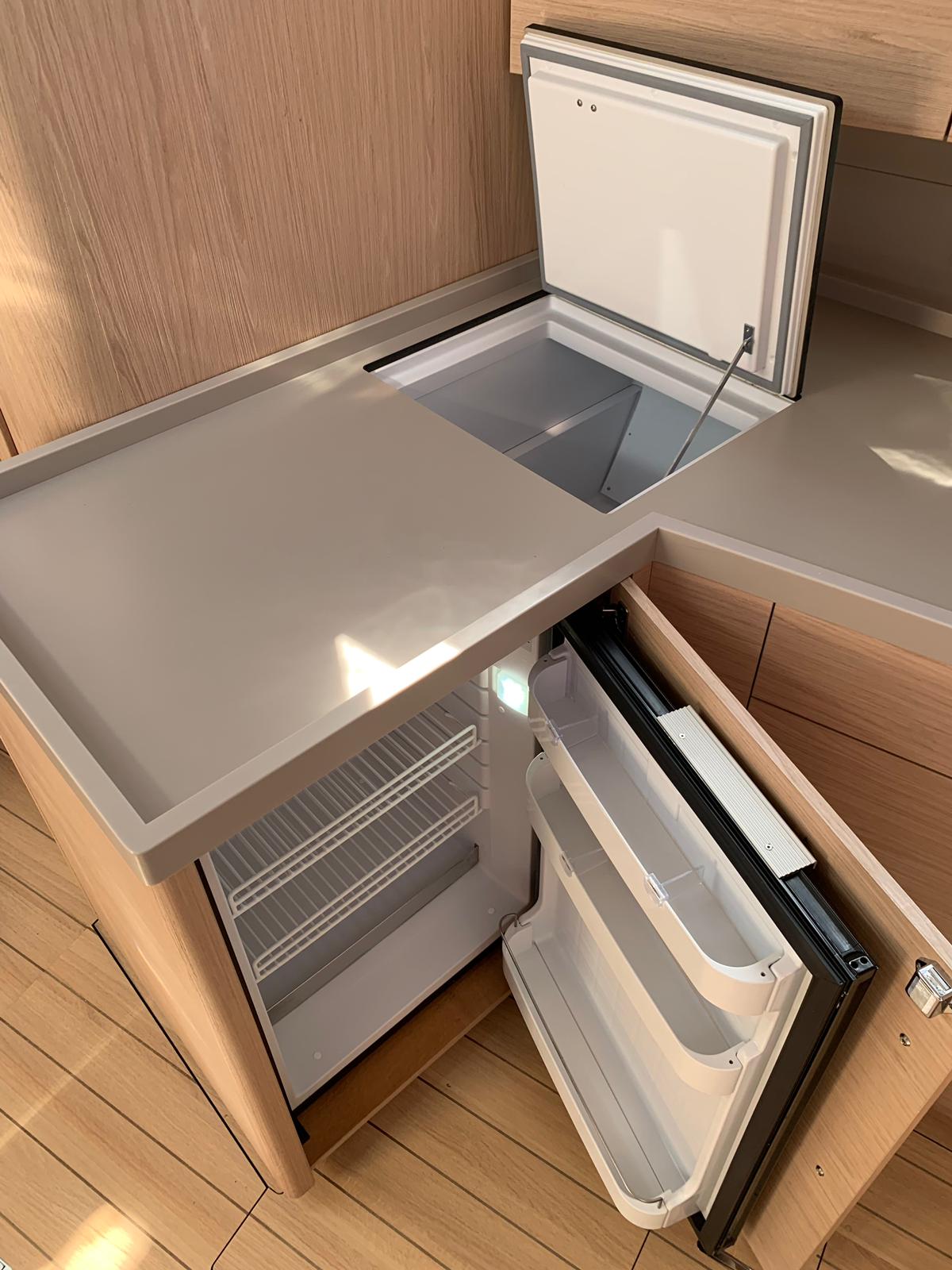| Inside | Borduhr, CD-Player, Klimaanlage (Landstrom), Luftpumpe für Beiboot, Pantryausstattung, Radio mit CD, Salontisch absenkbar, Warmwasser |