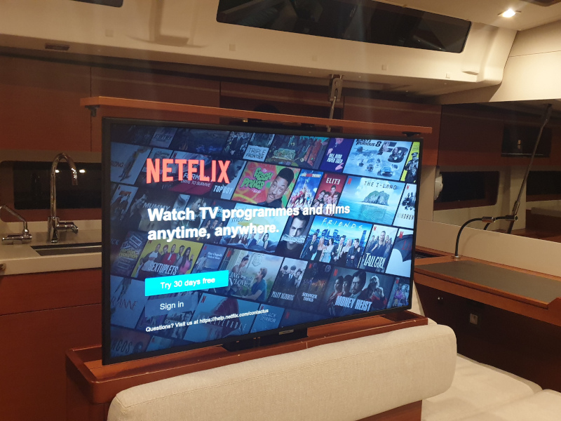 | Inside | Eiswürfelmaschine, FUSION Sound System, Generator, Inverter 12V/220V, Klimaanlage, Klimaanlage (ohne Landstrombedarf), Ladegerät, Mikrowelle, Salontisch absenkbar, TV, Ventilatoren in Kabinen, WC (elektr.) |