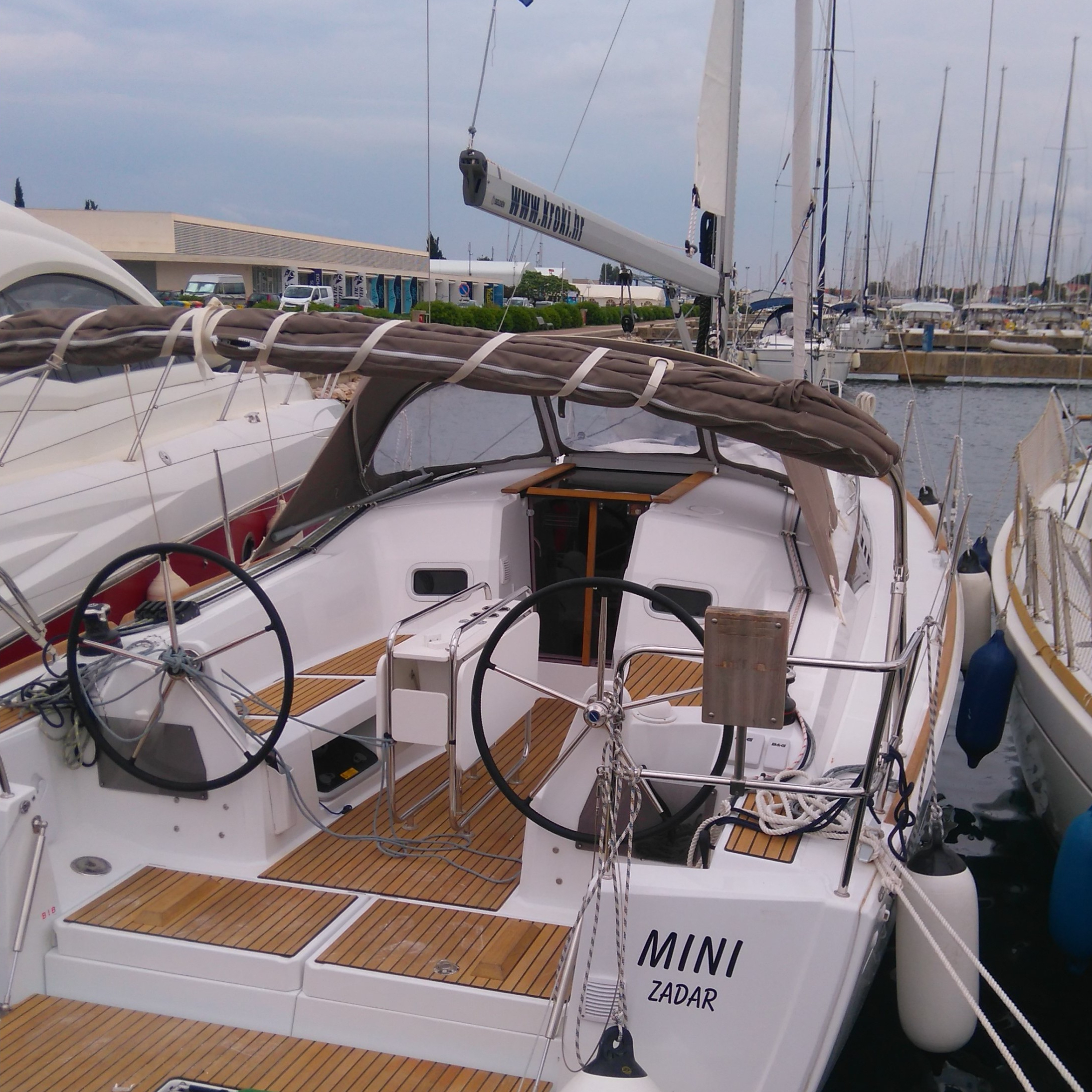 | Outside | Anker mit Kette, Biminitop, Bootshaken, Cockpitpolster, Cockpittisch, Deckbürste, elektr. Ankerwinsch, Fender, Festmacherleinen, Solaranlage, Sprayhood, Teak im Cockpit, Unterwasserbeleuchtung, Wasserschlauch, Windex, Winschen |
