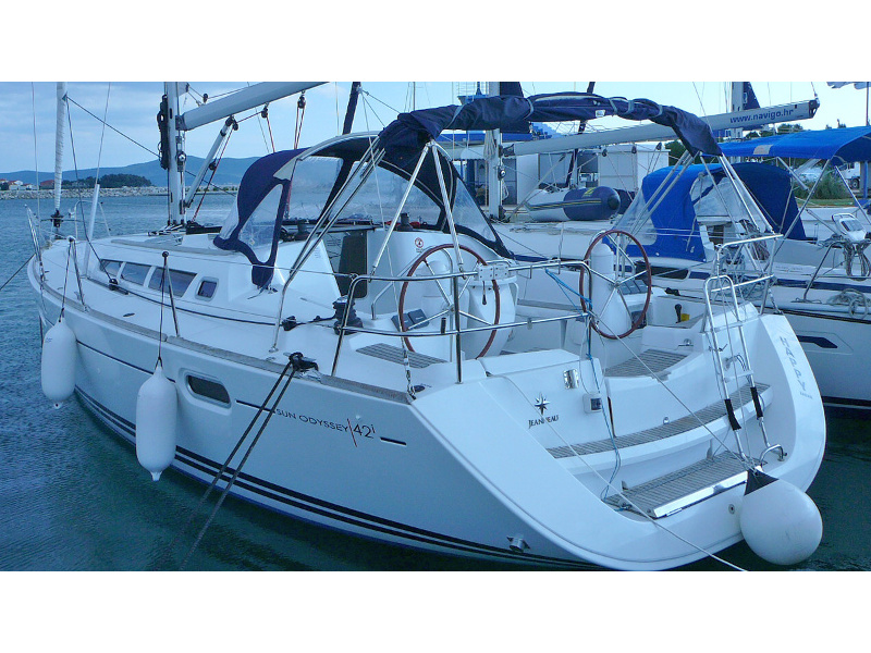 | Outside | 220 V-Landanschluss, Anker mit Kette, Badeleiter, Baro-/Hygro-/Thermometer, Biminitop, Bootshaken, Cockpitlautsprecher, Cockpittisch, Deckbürste, elektr. Ankerwinsch, Fender, Gangway, Heckdusche, Sprayhood, Teak im Cockpit, Winschen |