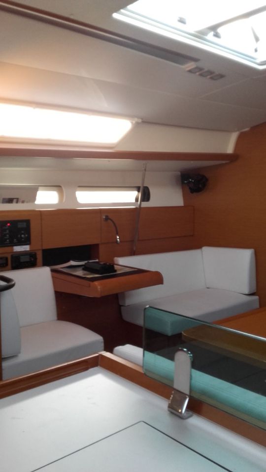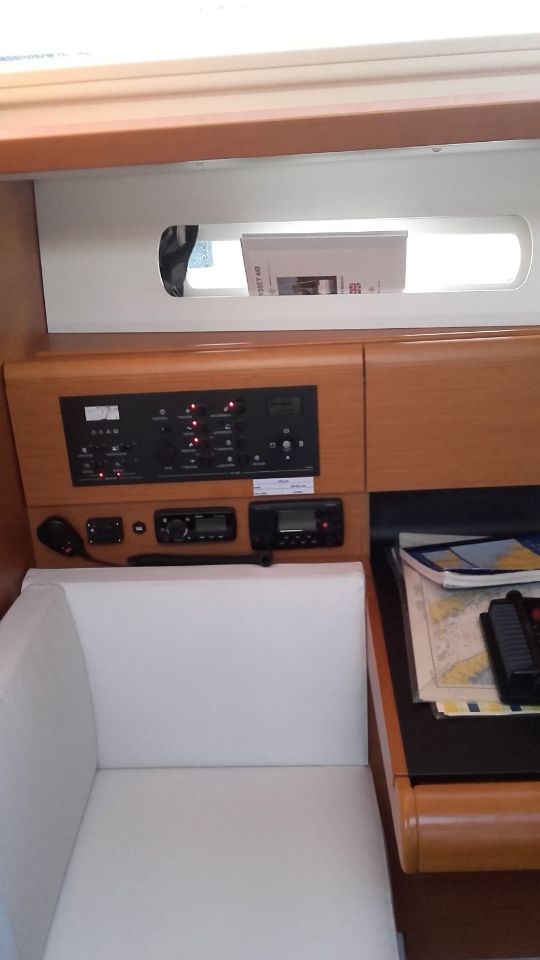 | Navigation | Barometer, Echolot, Fernglas, GPS mit Kartenplotter im Cockpit, Hafenhandbücher, Handpeilkompass, Kompass, Seekarten, Sumlog, Tridata (Log, Echolot, Windm.) |