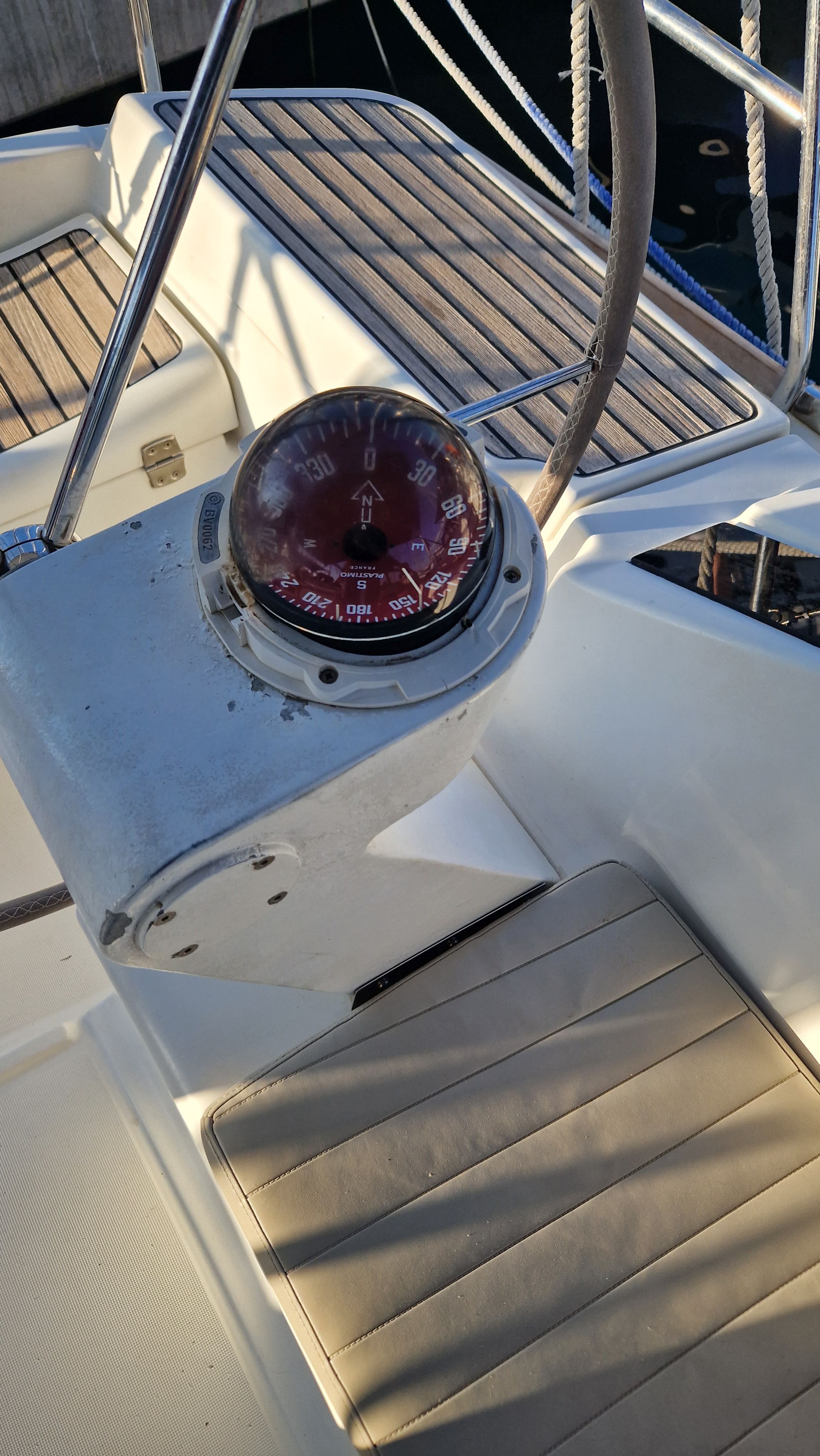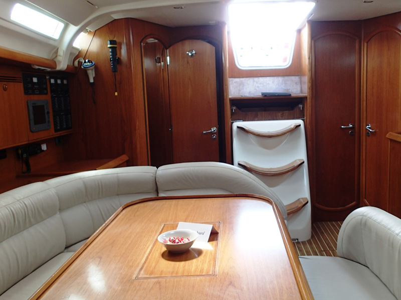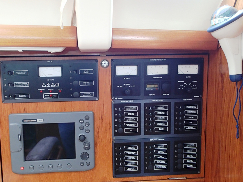 | Navigation | Echolot, Fernglas, GPS mit Kartenplotter im Cockpit, Hafenhandbücher, Handpeilkompass, Kompass, Navigationsbesteck, Seekarten, Sumlog, Windmesser |
