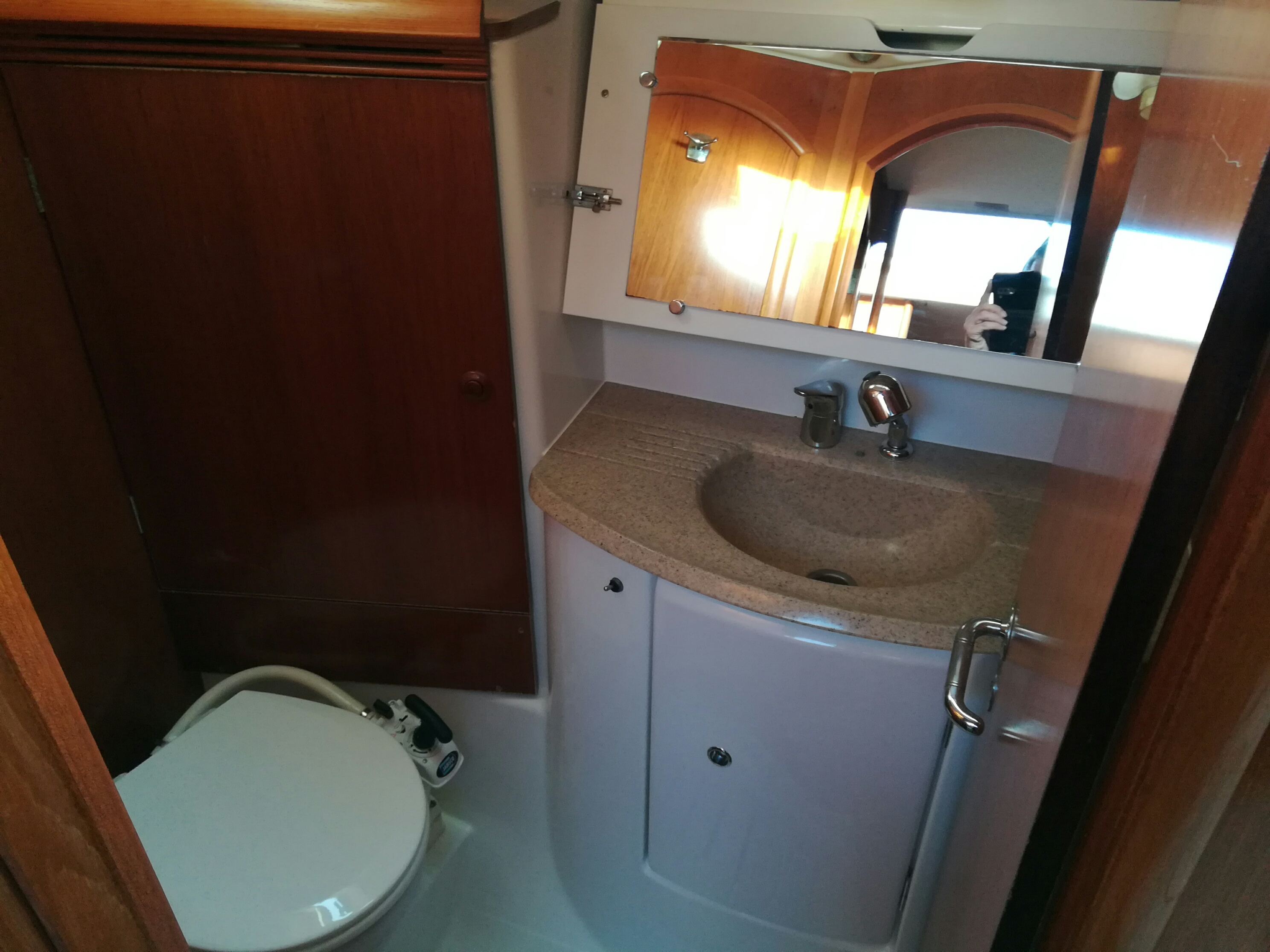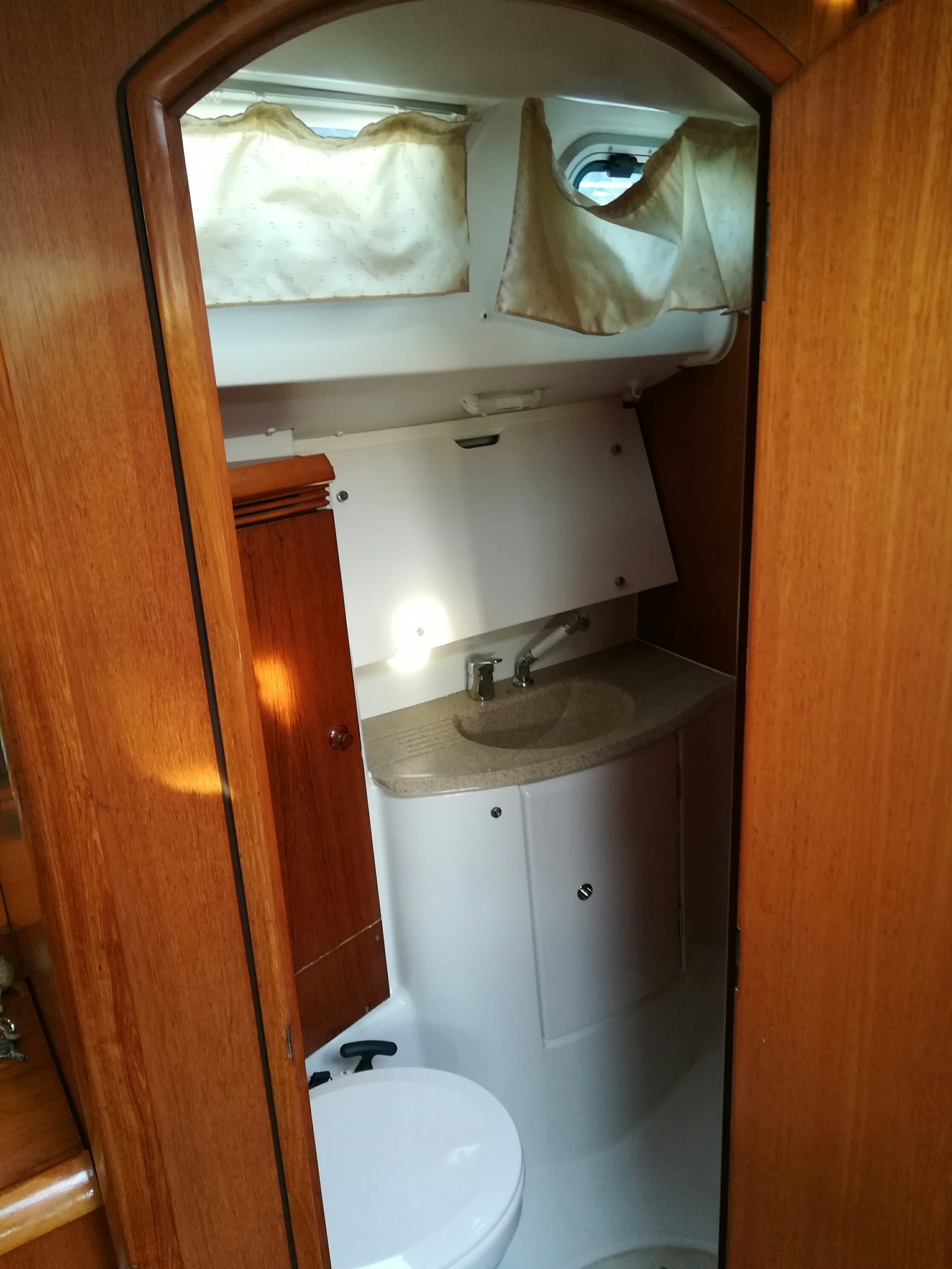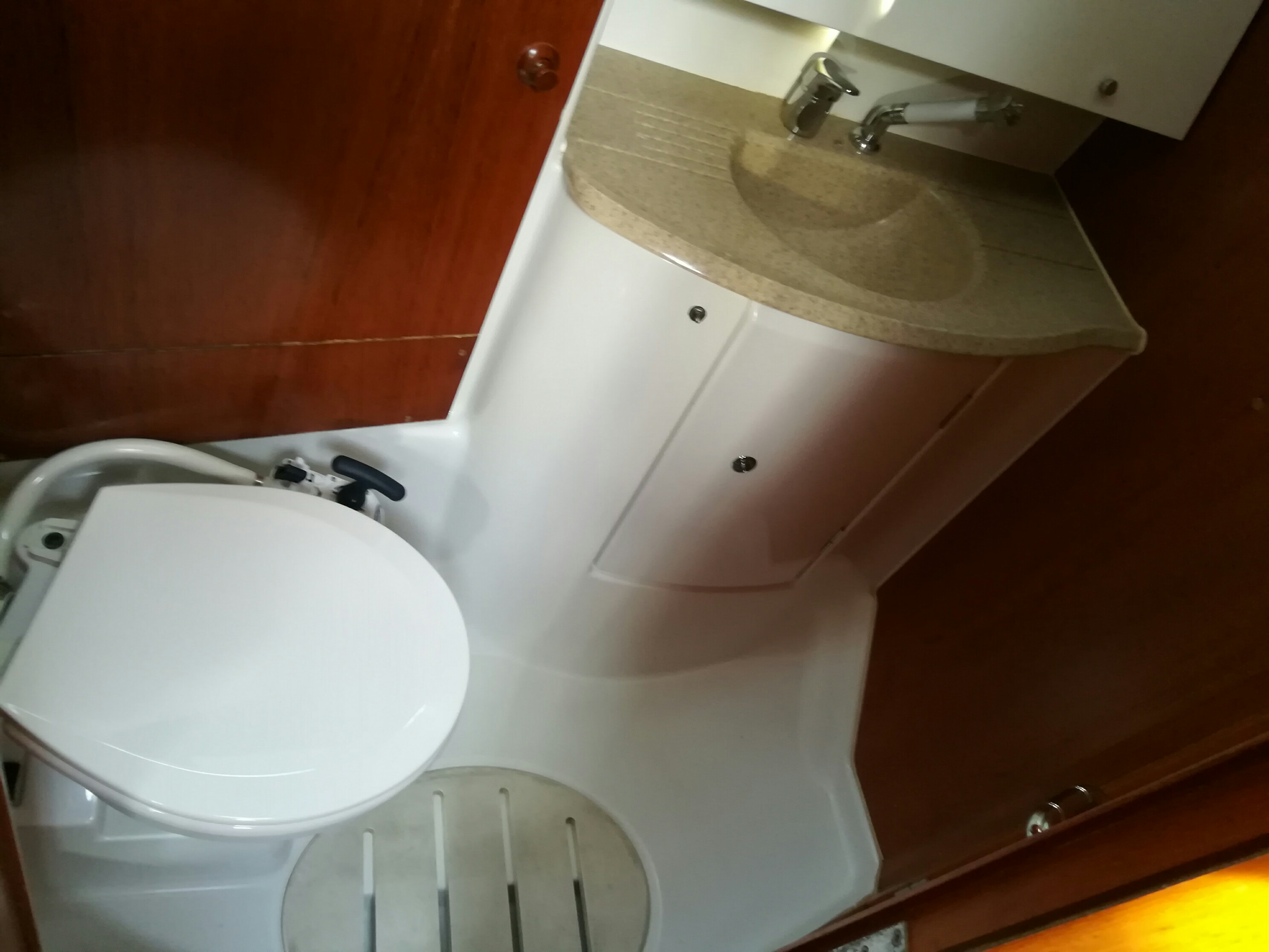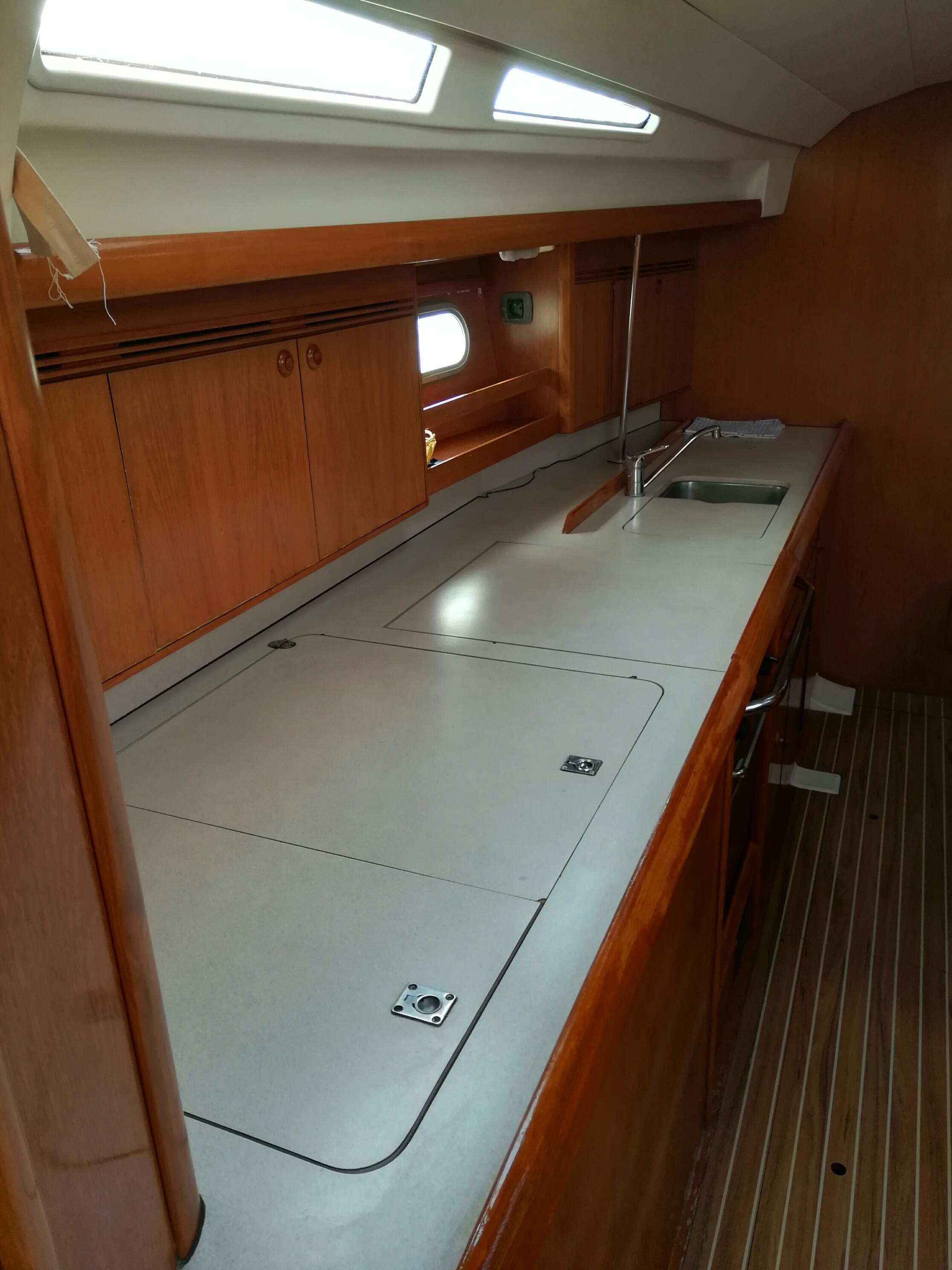 | Outside | 220 V-Landanschluss, Biminitop, Bootshaken, Cockpitdusche, Cockpitlautsprecher, Cockpitpolster, Cockpittisch, elektr. Ankerwinsch, Fender, Gangway, Solaranlage, Sprayhood, Wasserschlauch, Winschen |