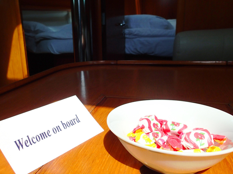 | Safety | Autopilot, Bordapotheke, Bugstrahlruder, Feststoffschwimmwesten, Feuerlöscher, Flaggen, Nebelhorn, Notsignale, Rettungsinsel, Rettungsring, Sicherheitsgurt, UKW-Funk, Zweitanker |