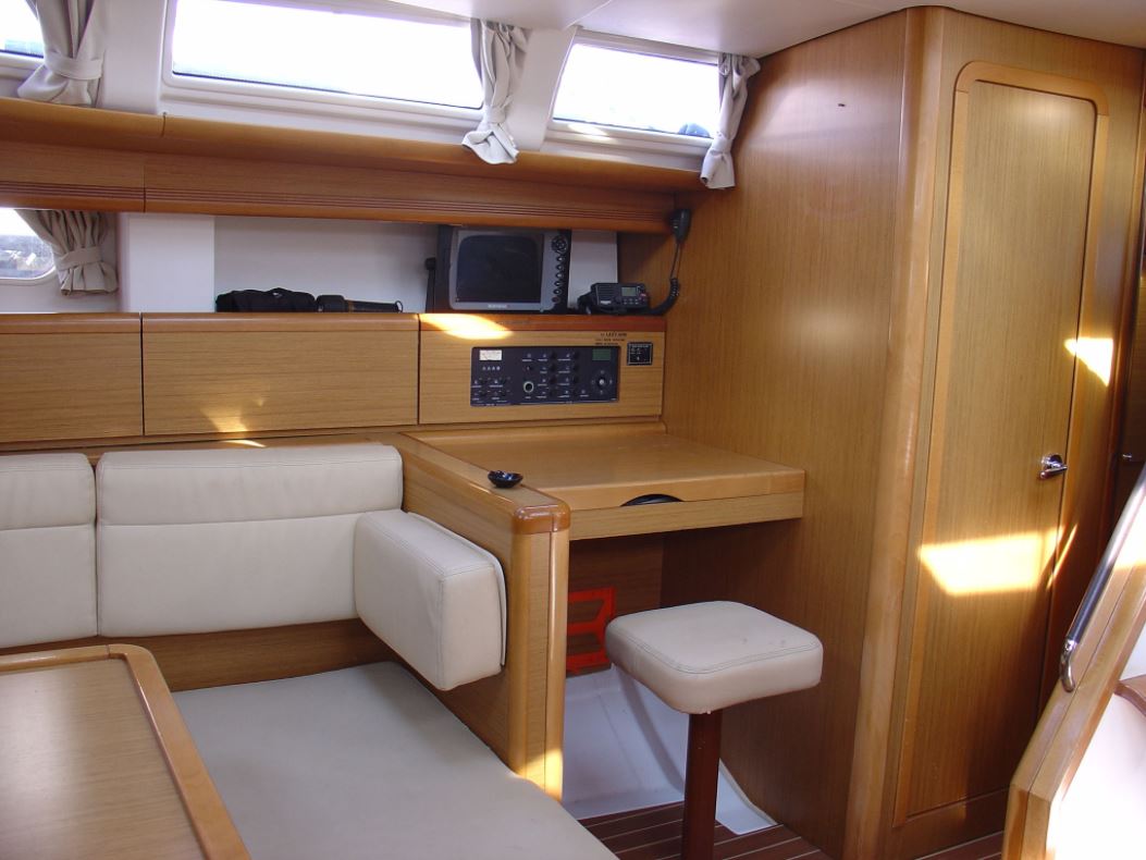 | Navigation | Barometer, Echolot, Fernglas, GPS mit Kartenplotter im Salon, Hafenhandbücher, Handpeilkompass, Kompass, Navigationsbesteck, Seekarten, Sumlog, Windmesser |