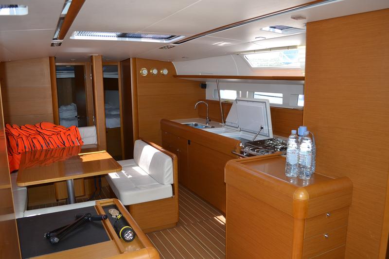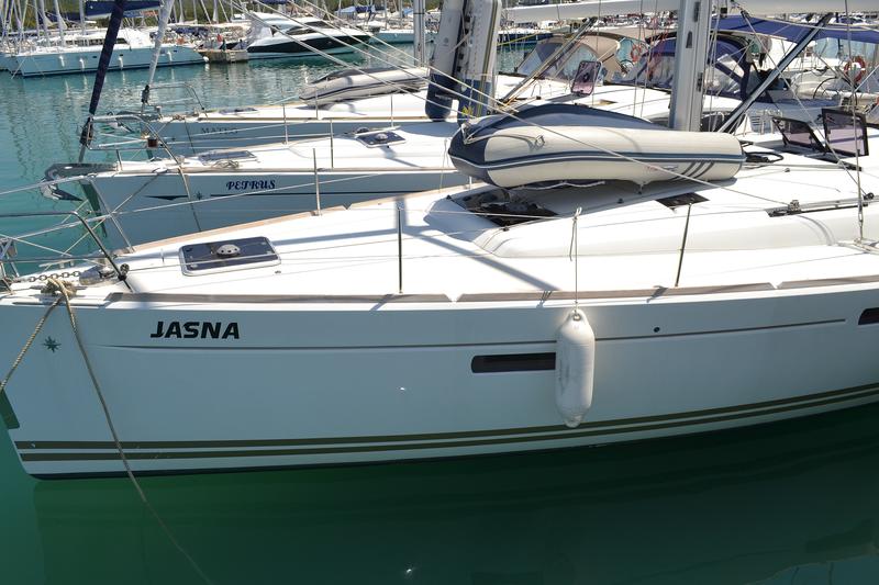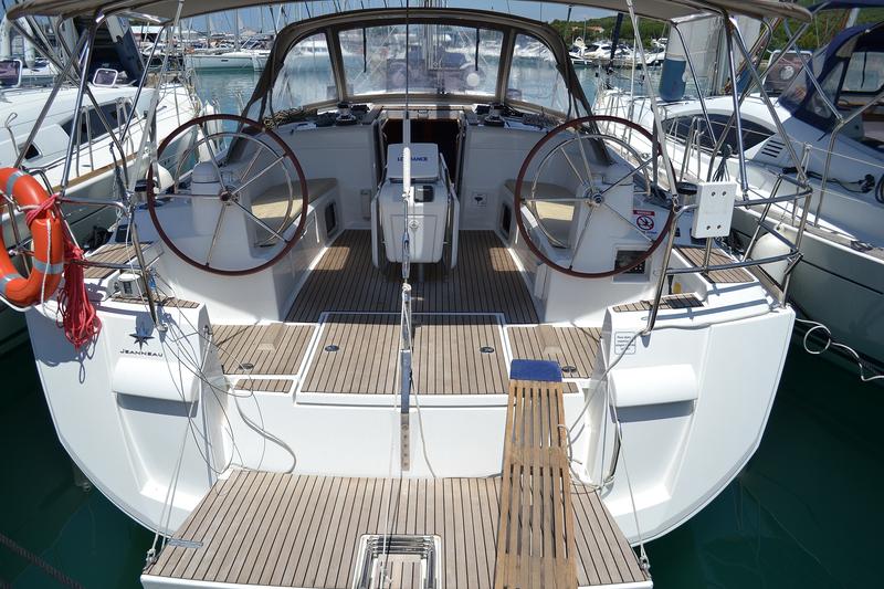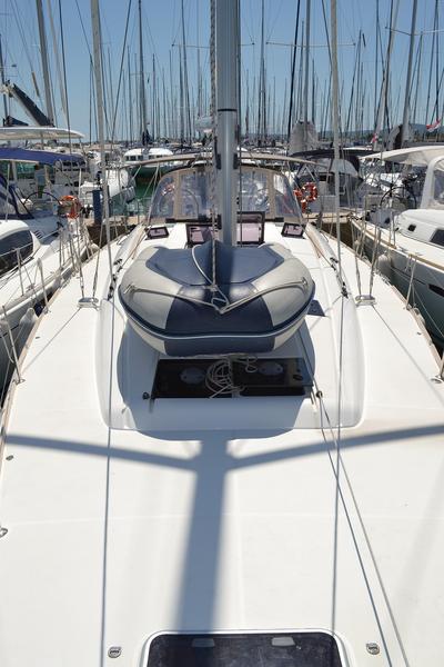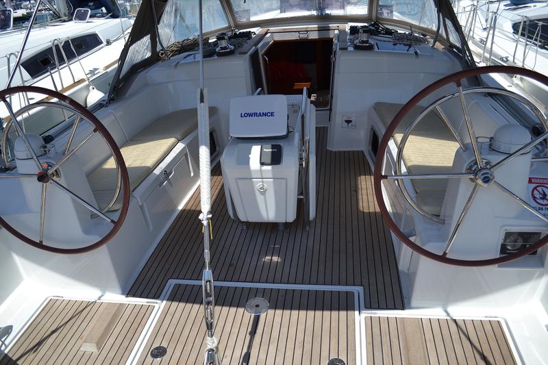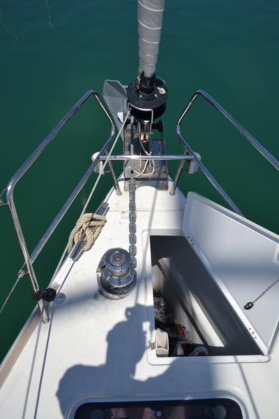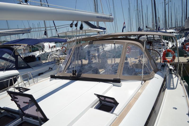 | Outside | 12 V-Anschluss, Biminitop, Cockpitdusche, Cockpitpolster, Cockpittisch, elektr. Ankerwinsch, Gangway, Solaranlage, Sprayhood, Teak im Cockpit, Windex |