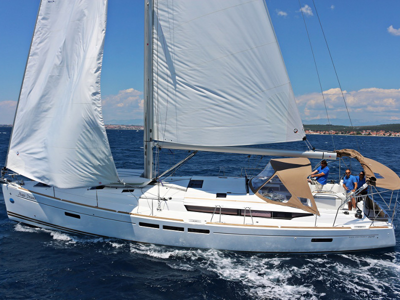 | Outside | Badeplattform, Biminitop, Bootshaken, Buganker, Cockpitdusche, Cockpittisch, Deckbürste, Dieselkanister , Eimer mit Seil, elektr. Ankerwinsch, Fender, Festmacherleinen, Gangway, Sprayhood, Wasserschlauch, Winschen |