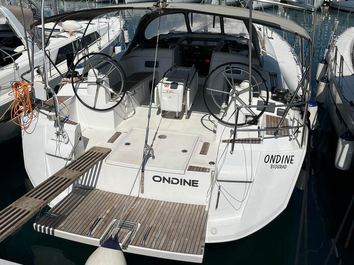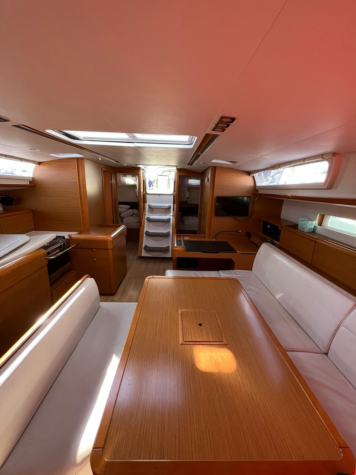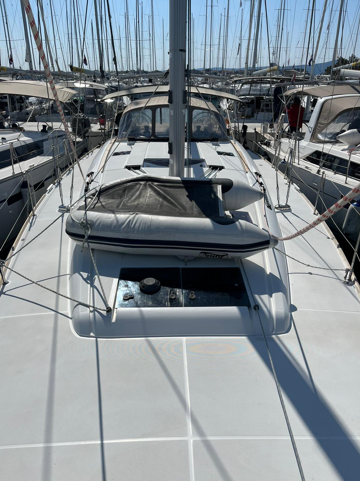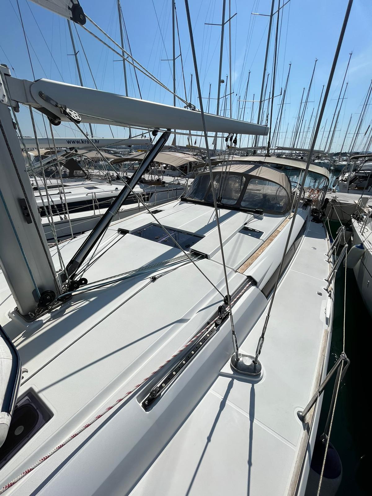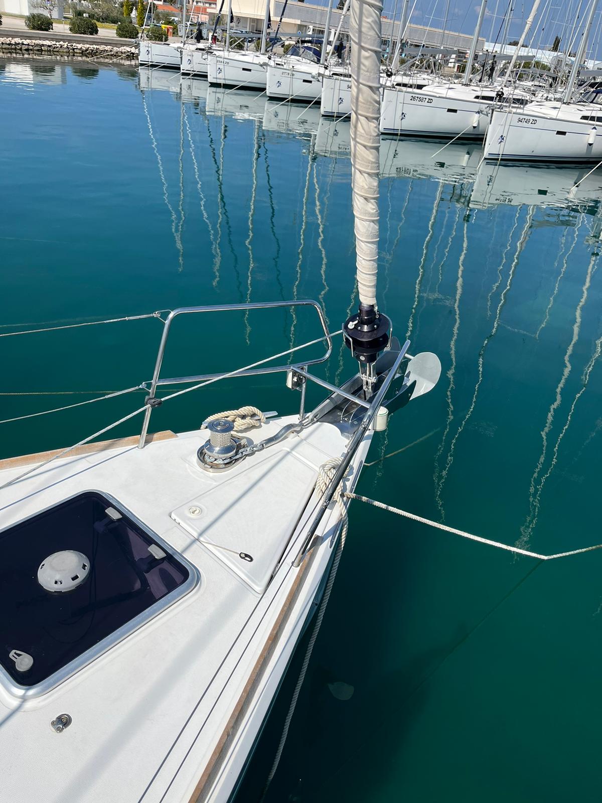 | Outside | Anker mit Kette, Biminitop, Bootshaken, Cockpittisch, Deckbürste, elektr. Ankerwinsch, Fender, Festmacherleinen, Solaranlage, Sprayhood, Unterwasserbeleuchtung, Wasserschlauch, Windex, Winschen |