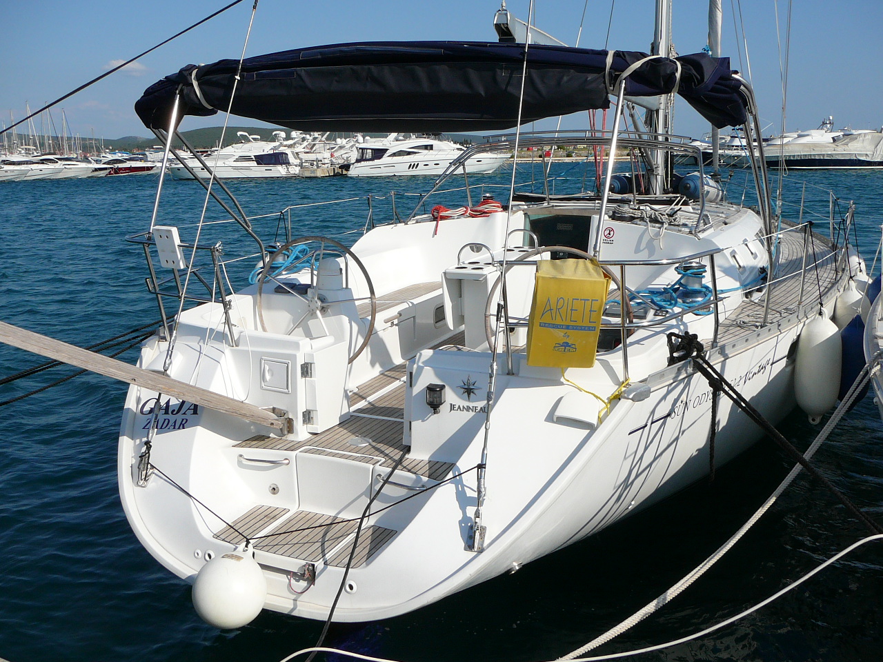 | Outside | Anker mit Kette, Biminitop, Bootshaken, Cockpittisch, Deckbürste, elektr. Ankerwinsch, Fender, Festmacherleinen, Sprayhood, Teakdeck, Wasserschlauch, Windex, Winschen |