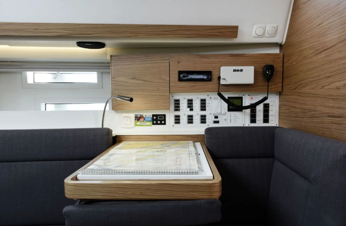Barometer, elektr. Seekarten, Fernglas, GPS mit Kartenplotter im Cockpit, Hafenhandbücher, Handpeilkompass, Kompass, Seekarten, Tridata (Log, Echolot, Windm.) |