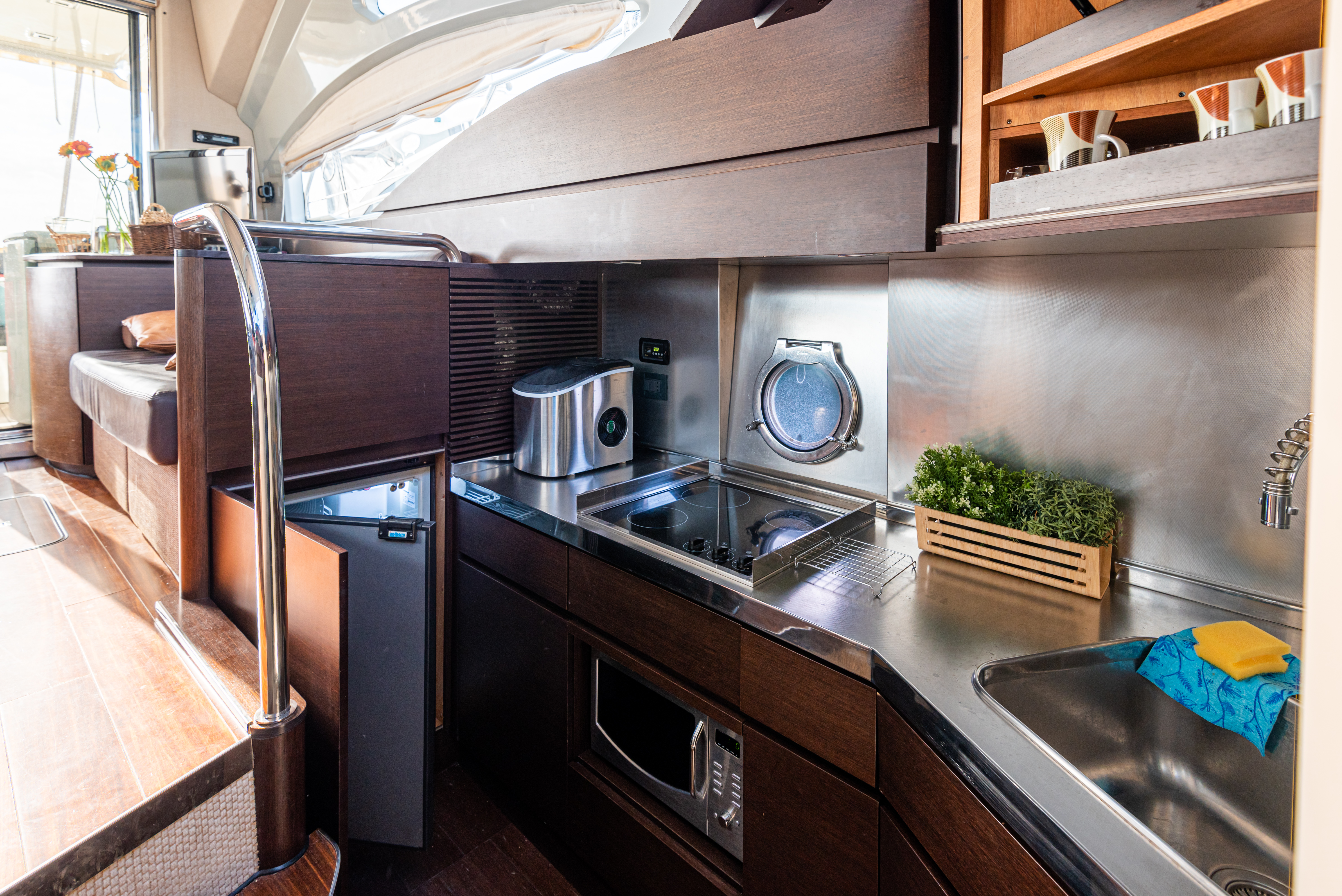 | Inside | 220V Steckdosen, DVD-Player, Gasherd, Geschirr, Kühlbox, Kühlschrank, Spülbecken, TV, Warmwasser |