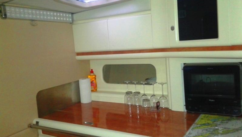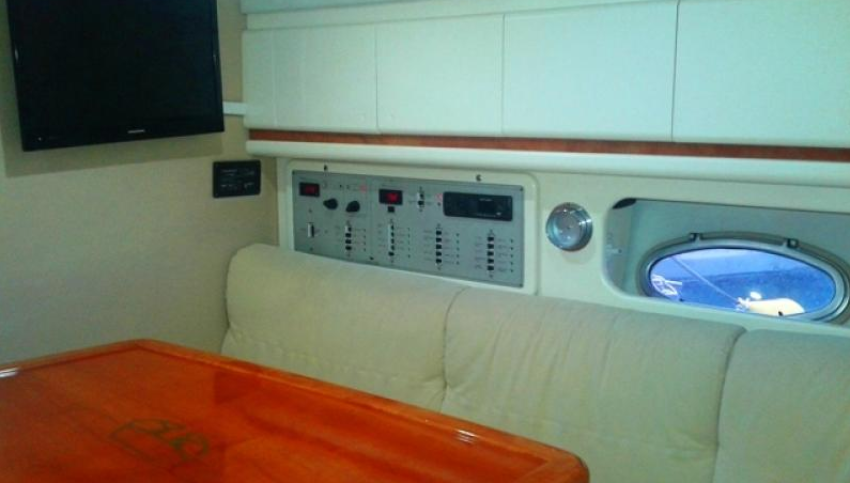 | Outside | 220 V-Landanschluss, Anker mit Kette, Badeleiter, Badeplattform, Biminitop, Cockpitdusche, Cockpittisch, Deckpolster, elektr. Ankerwinsch, Fender, Gangway |