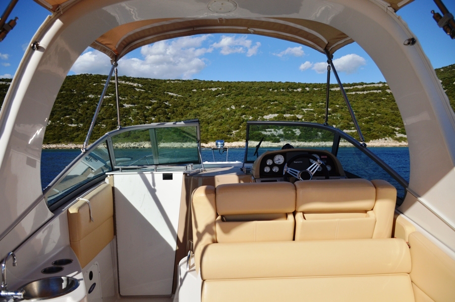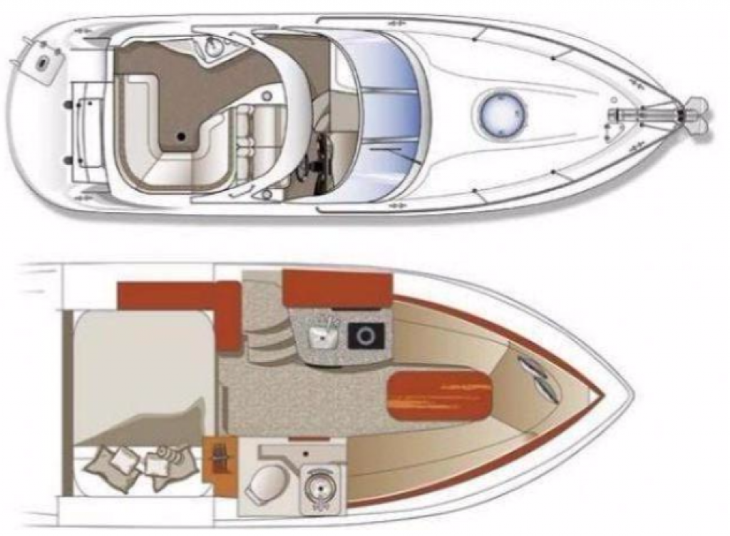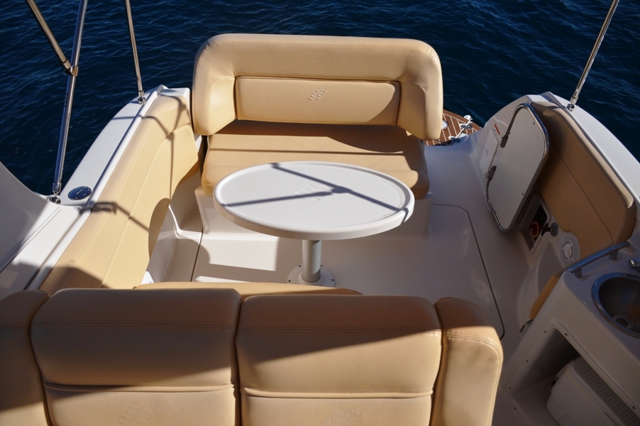 | Outside | 220 V-Landanschluss, Anker mit Kette, Badeleiter, Badeplattform, Biminitop, Cockpitdusche, Cockpittisch, Deckpolster, elektr. Ankerwinsch, Fender, Teakdeck |