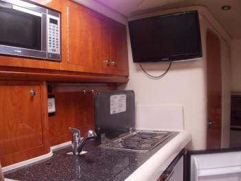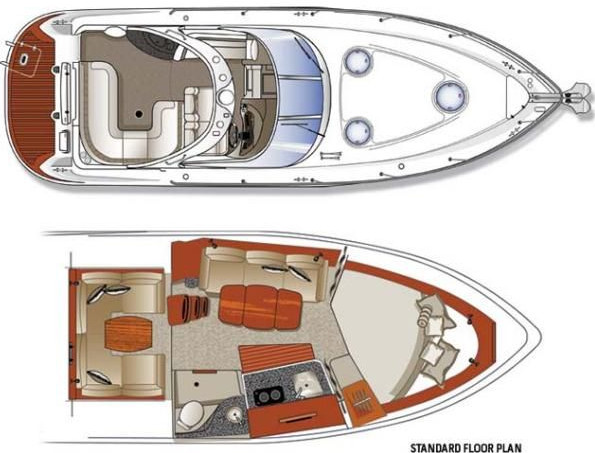 | Outside | 220 V-Landanschluss, Anker mit Kette, Badeleiter, Badeplattform, Biminitop, Cockpitdusche, Cockpittisch, Deckpolster, elektr. Ankerwinsch, Fender |