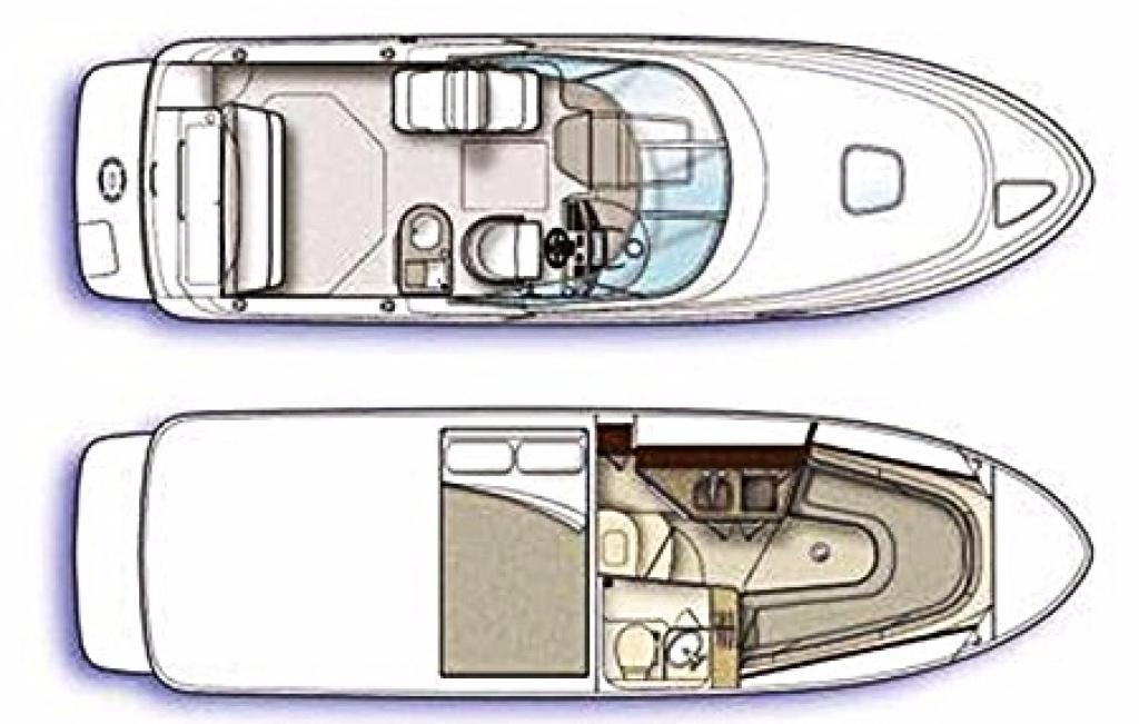 | Outside | 220 V-Landanschluss, Anker mit Kette, Badeleiter, Badeplattform, Biminitop, Cockpitdusche, Cockpittisch, Deckpolster, elektr. Ankerwinsch, Fender |