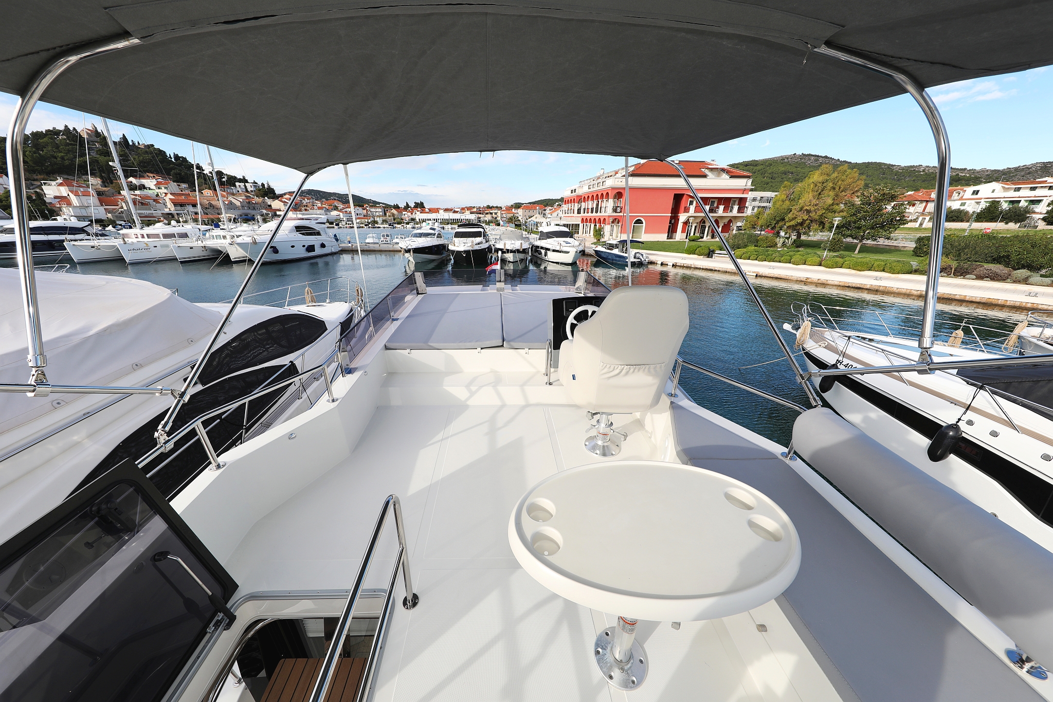 | Outside | 220 V-Landanschluss, Anker mit Kette, Badeleiter, Badeplattform, Biminitop, Bootshaken, Cockpitdusche, Cockpitlautsprecher, Cockpitpolster, Cockpittisch, elektr. Ankerwinsch, Fender, Festmacherleinen, Gangway, Grill, Solaranlage, Wasserschlauch |