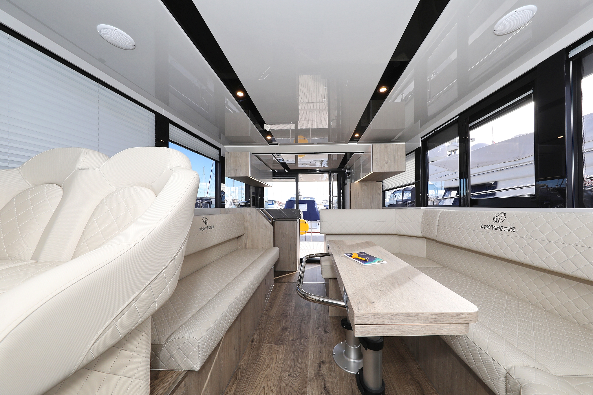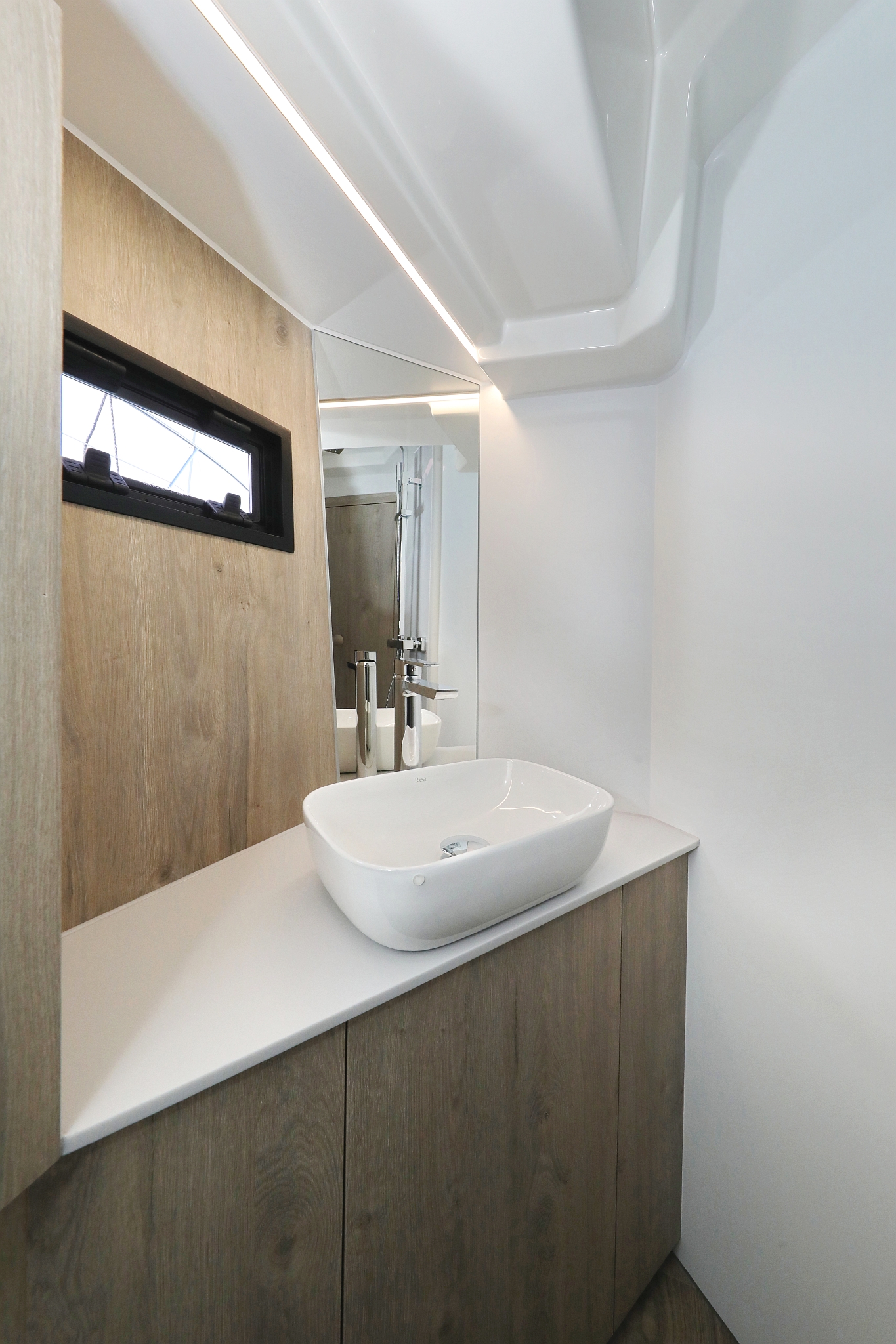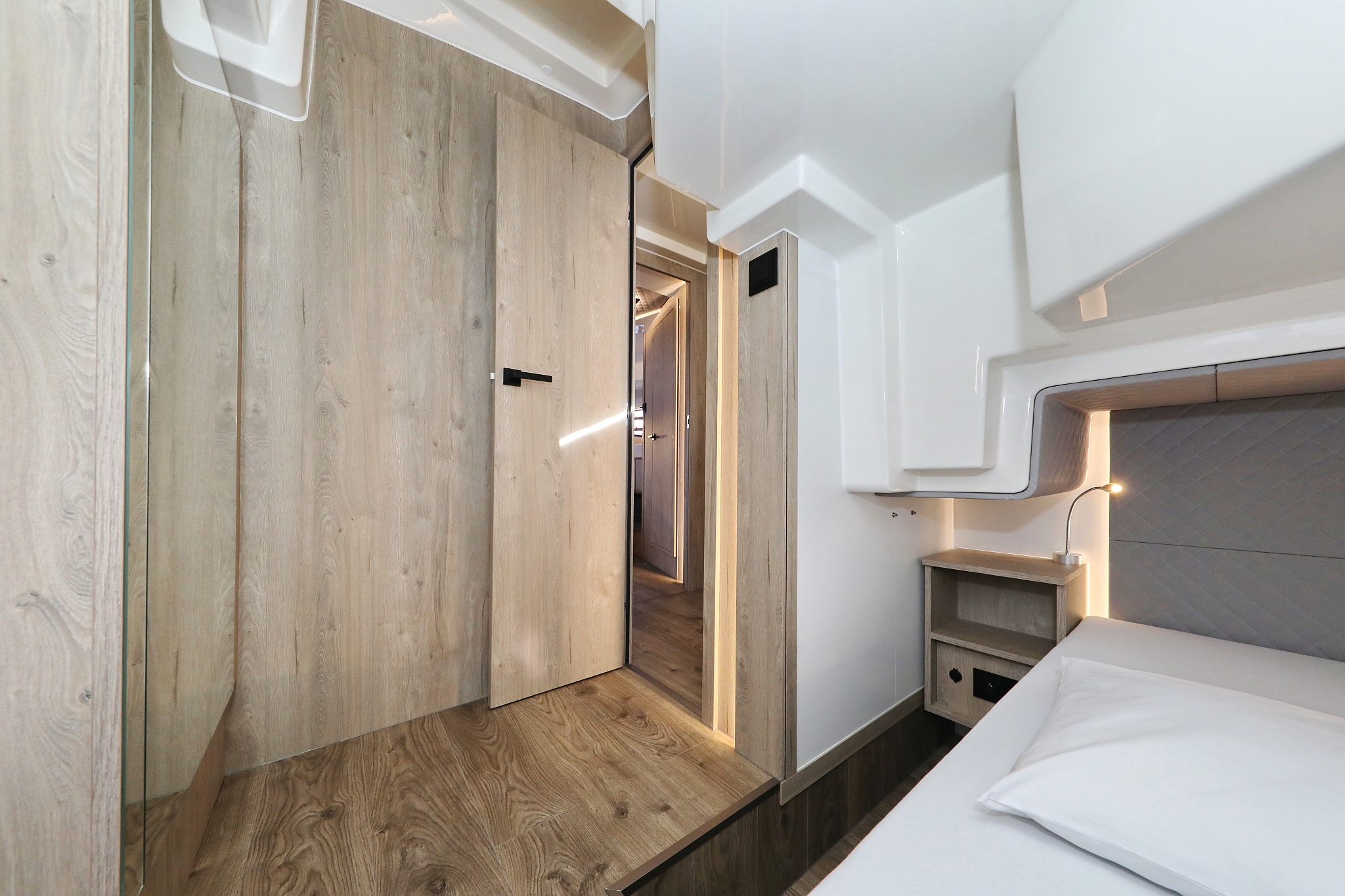 | Inside | 220V Steckdosen, 3-flammiger Gasherd, Backofen, Fäkalientank, Geschirrspüler, Heizung, Inverter 12V/220V, Kaffeemaschine, Klimaanlage, Kühlschrank, Ladegerät, Mokkakanne, Pantryausstattung, Radio, Salontisch absenkbar, Spülbecken, TV, USB Steckdosen in Salon und Kabinen, Wasserkocher, WC (elektr.) |
