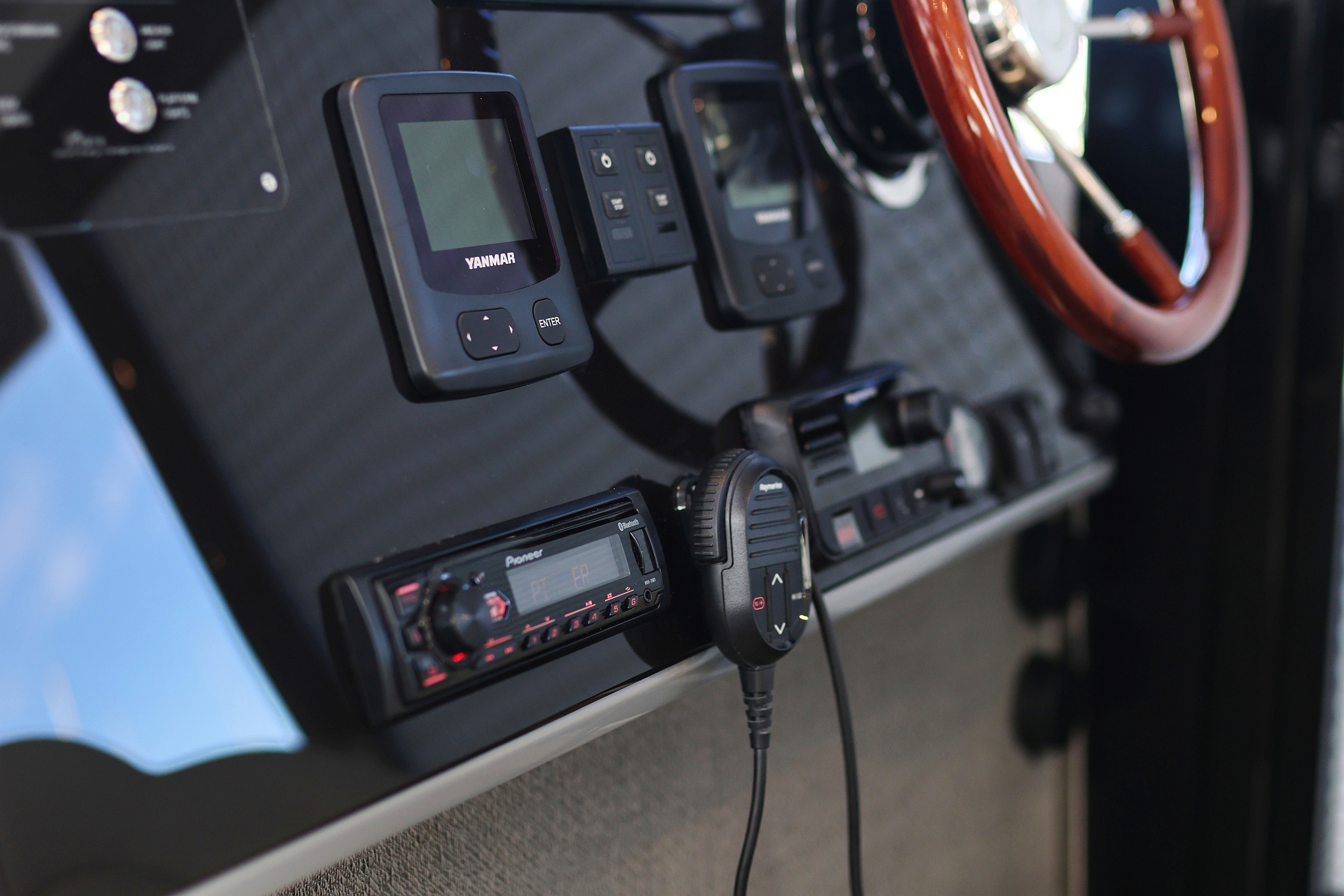 | Safety | Autopilot, Bordapotheke, Bordwerkzeug, Bugstrahlruder, elektr. Bilgepumpe, Feuerlöscher, Handbilgepumpe, Lifebelts, Navigationslichter, Nebelhorn, Notsignale, Radarreflektor, Rettungsinsel, Rettungskragen, Rettungswesten, Taschenlampe, UKW-Funk, Zweitanker |