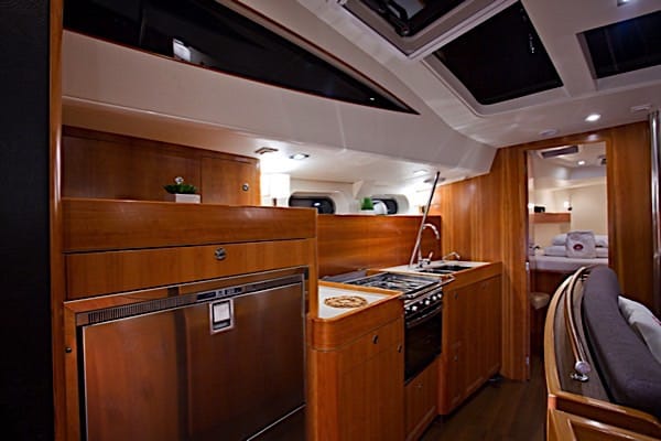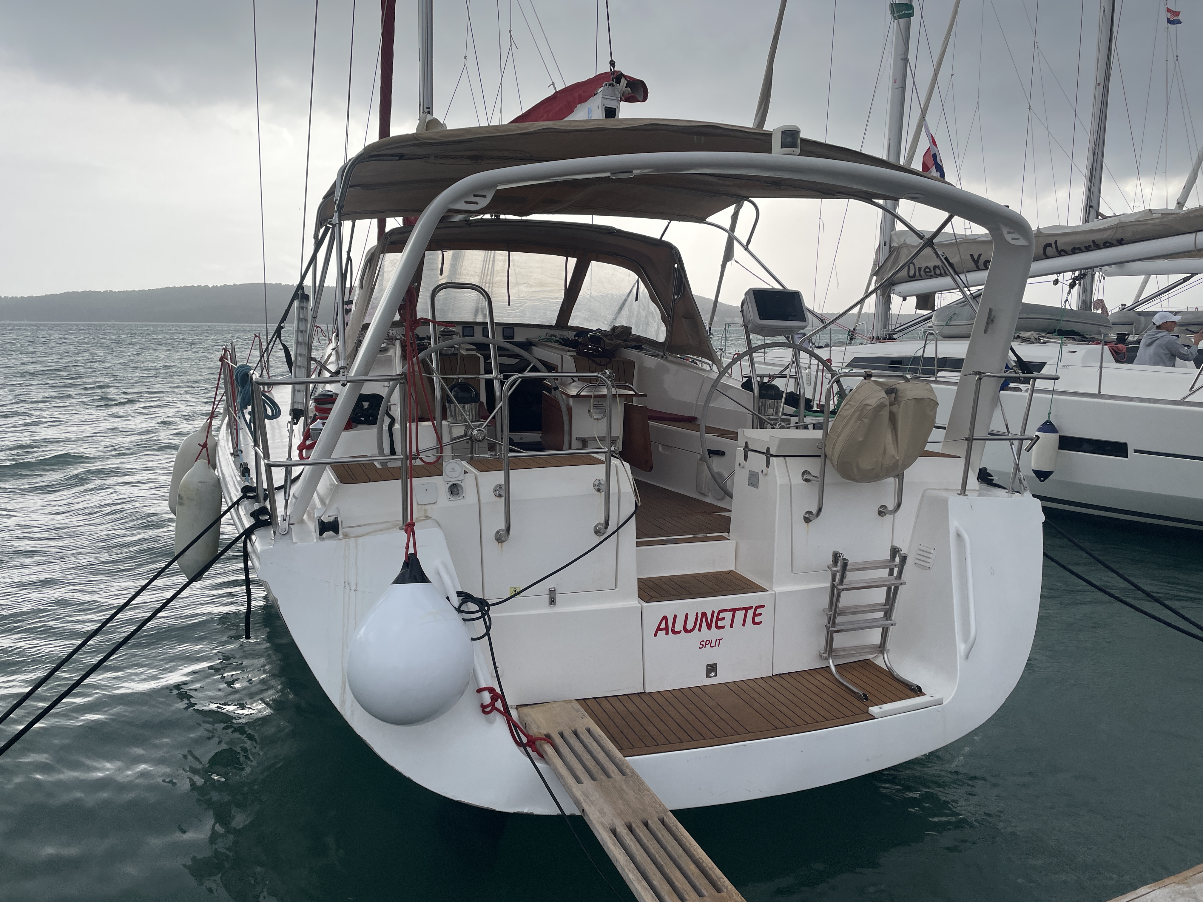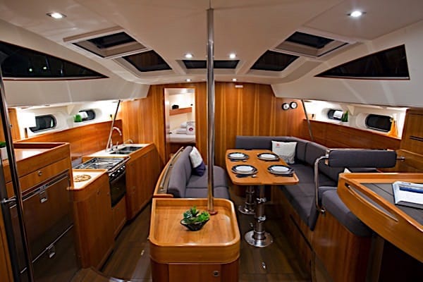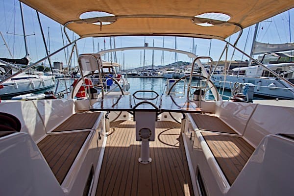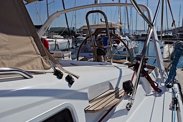 | Outside | Badeplattform, Biminitop, Cockpitpolster, elektr. Ankerwinsch, Sprayhood, Teak im Cockpit |