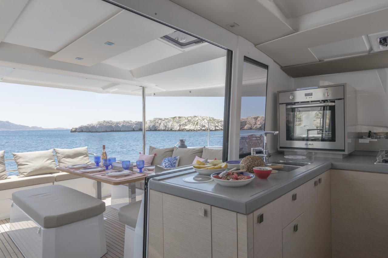 | Inside | Fäkalientank, FUSION Sound System, Gasherd mit Backofen, Gefrierschrank, Generator, Heizung, Kaffeemaschine, Klimaanlage (ohne Landstrombedarf), Kühlschrank, Ladegerät, Mikrowelle, Pantryausstattung, Radio mit CD und USB, Radio mit USB und Bluetooth, Salontisch absenkbar, Warmwasser, Watermaker, WC (elektr.) |