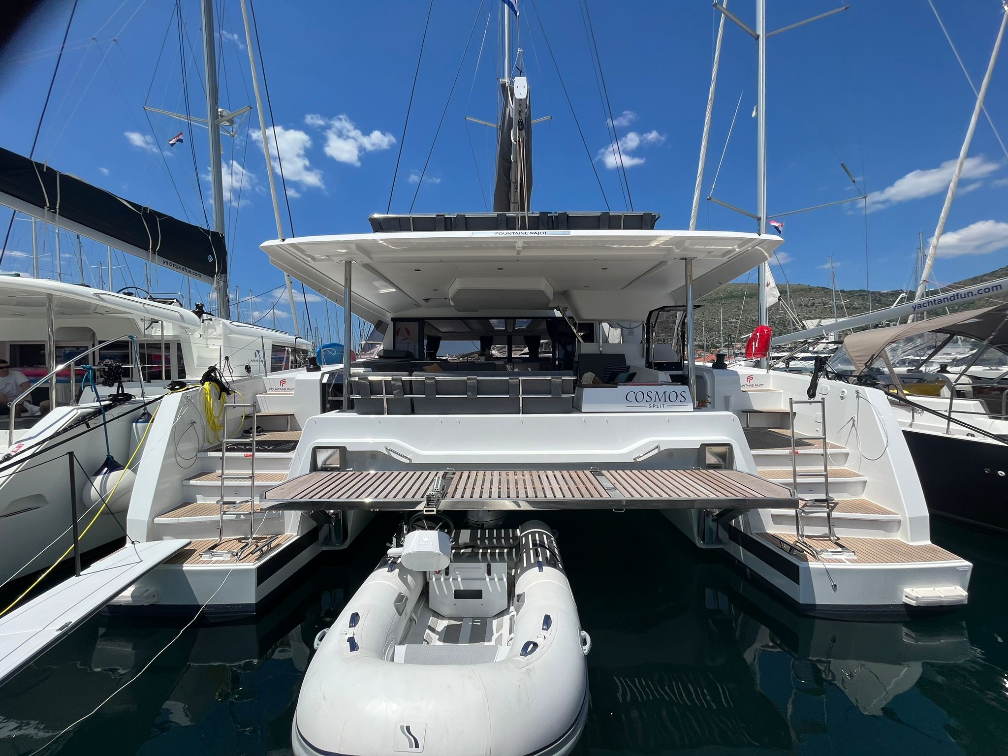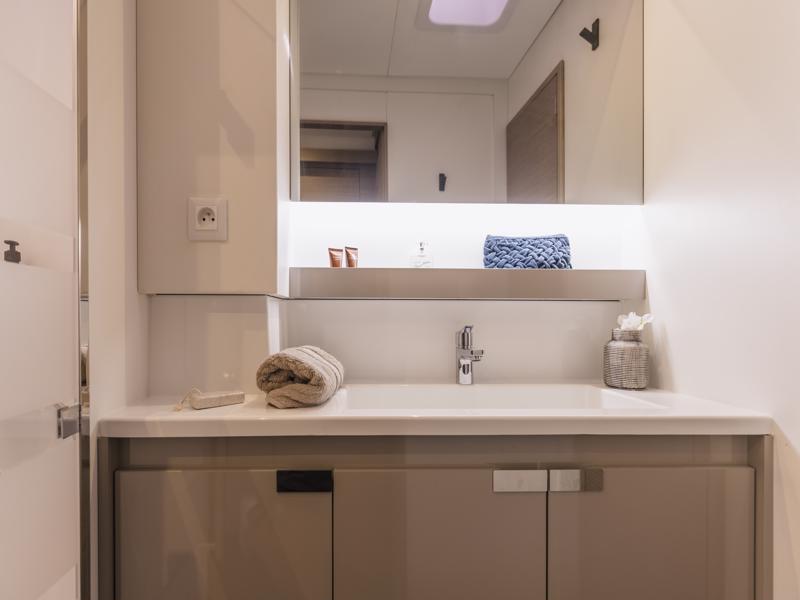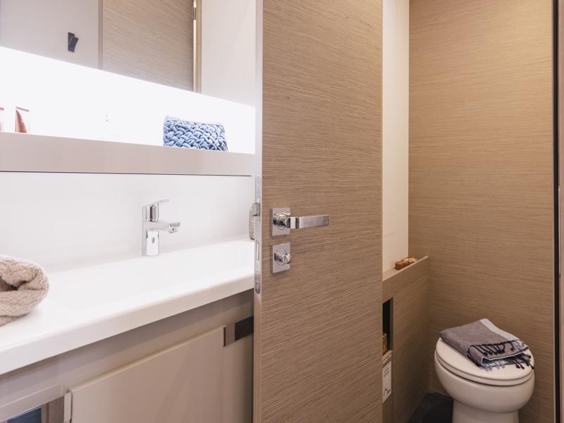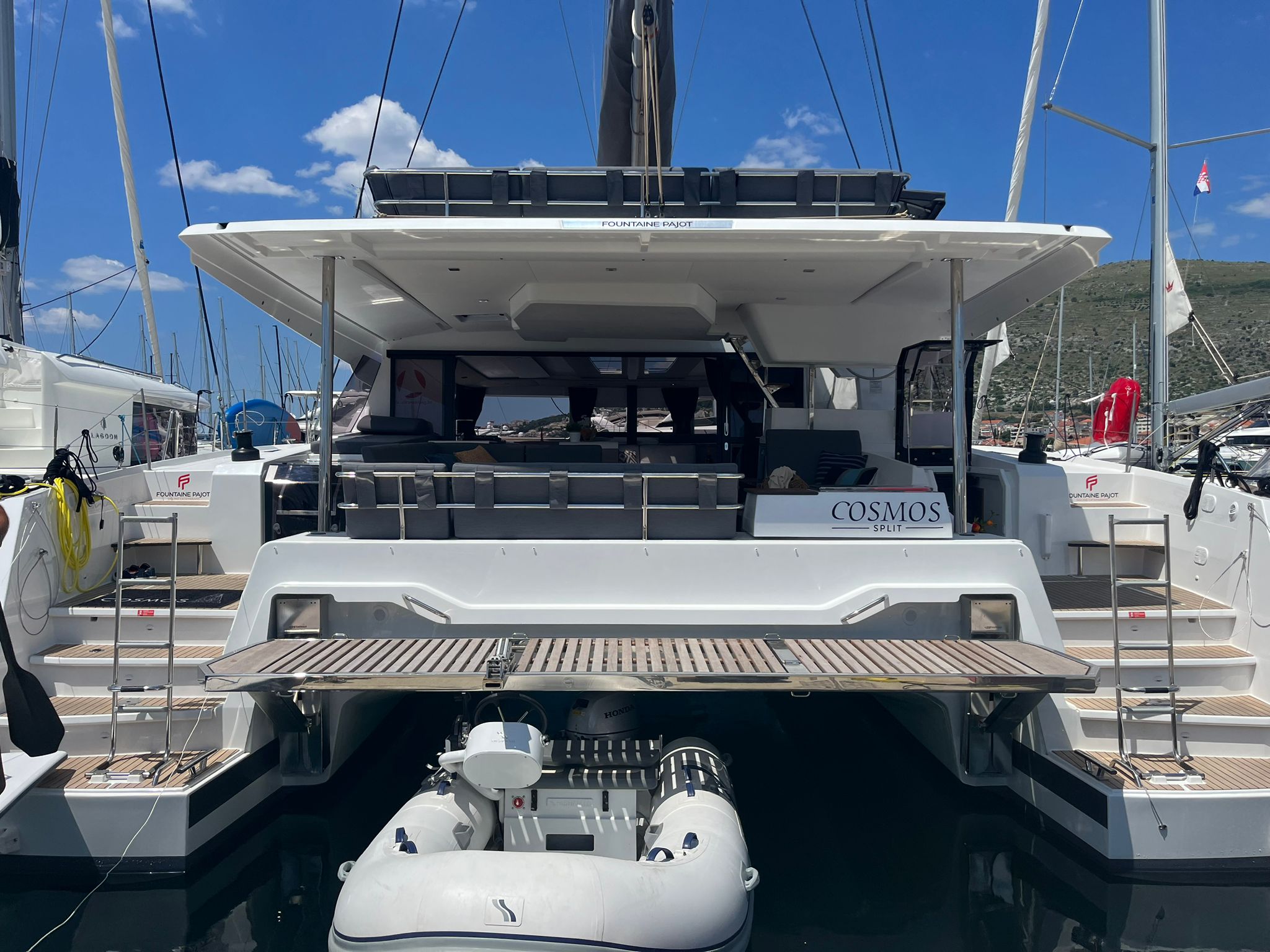 | Inside | Gasherd mit Backofen, Gefrierschrank, Generator, Geschirrspüler, Heizung, Inverter 12V/220V, Klimaanlage (ohne Landstrombedarf), Kühlschrank, Kühlschrank mit Gefrierfach, Ladegerät, Mikrowelle, Nespresso-Maschine, Pantryausstattung, Radio mit CD und USB, Salontisch absenkbar, TV, Ventilator, Warmwasser, Waschmaschine mit Trockner, Watermaker, WC (elektr.) |