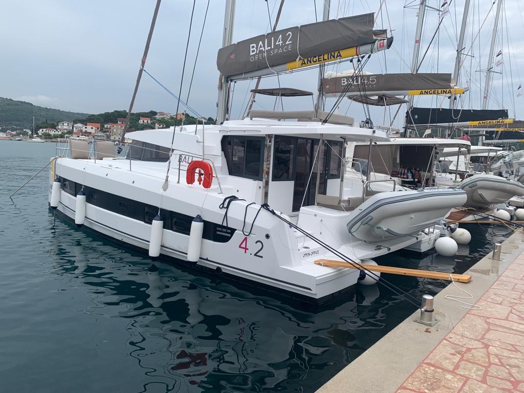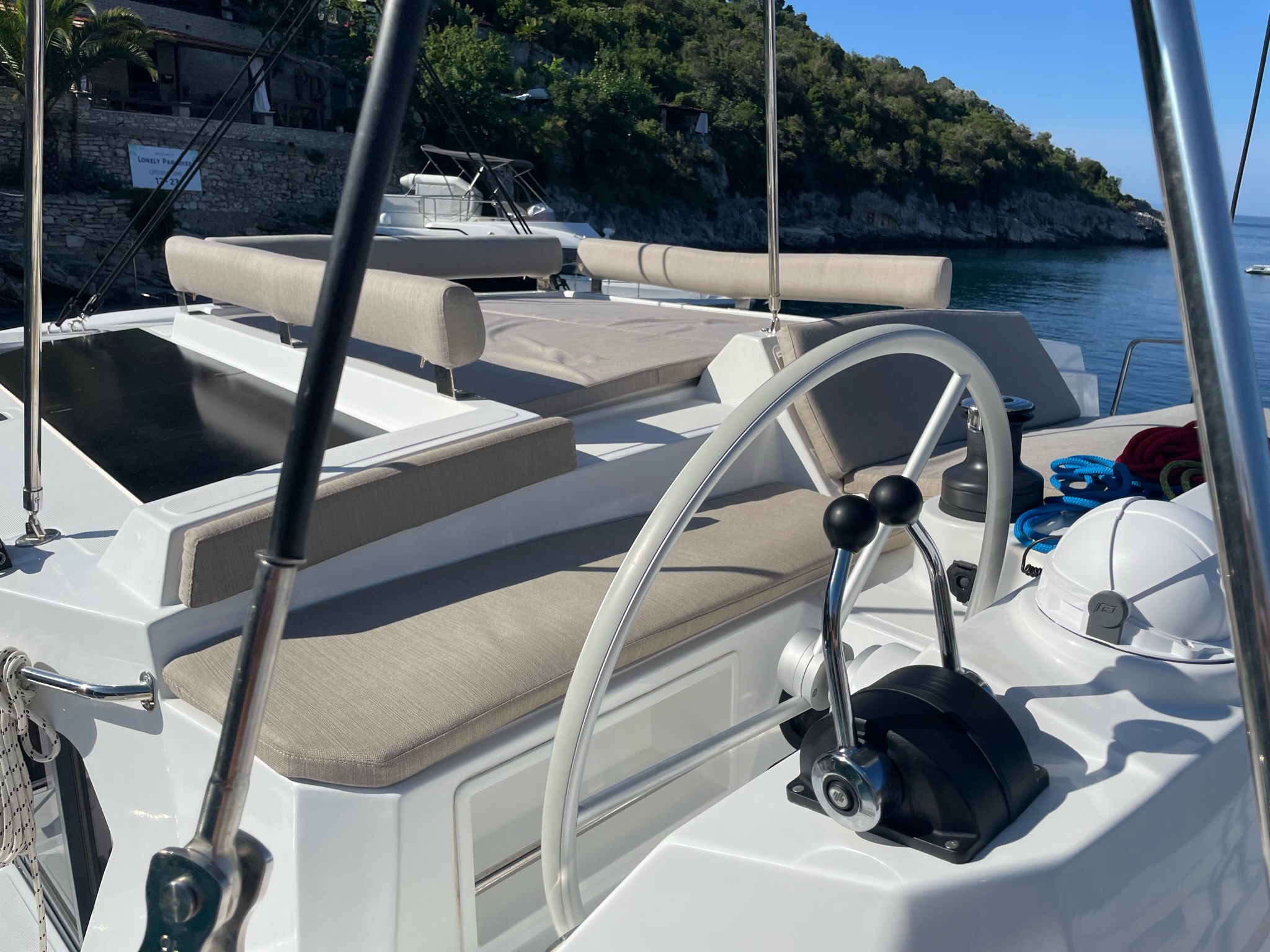 | Inside | 220V Steckdosen, Elektrische Filterkaffeemaschine, Fäkalientank, FUSION Sound System, Gasherd mit Backofen, Heizung, Inverter 12V/220V, Klimaanlage (Landstrom), Kühlschrank mit Gefrierfach, Ladegerät, Mikrowelle, Mokkakanne, Pantryausstattung, Radio mit Bluetooth, Spülbecken, USB Steckdosen in Salon und Kabinen, Ventilatoren in Kabinen, Wasserkocher, WC (elektr.) |
