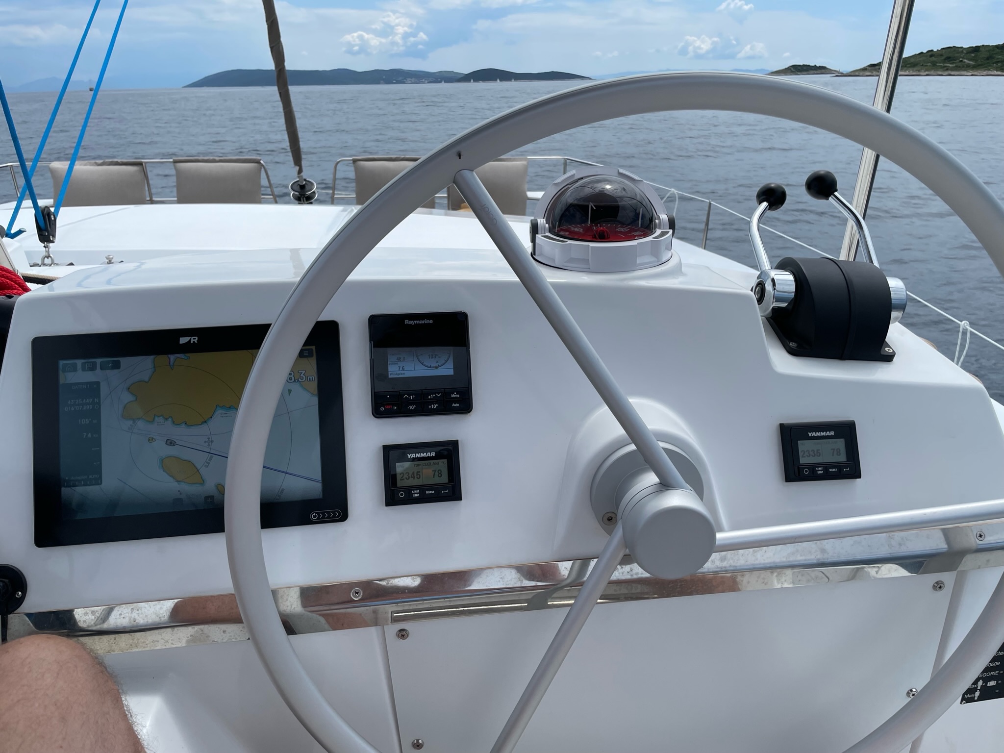 | Navigation | Fernglas, GPS mit Kartenplotter, GPS mit Kartenplotter im Cockpit, Handpeilkompass, Kompass, Navigationsbesteck, Seekarten, Tridata (Log, Echolot, Windm.), Windmesser |