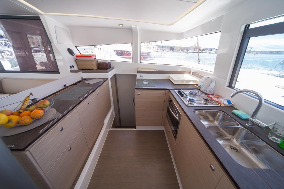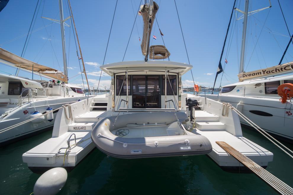 | Outside | Badeplattform, Biminitop, Cockpitdusche, Cockpitpolster, Cockpittisch, Davits, Deckpolster, elektr. Ankerwinsch, elektr. Winsch, Flybridge, Polster auf Flybridge, Solaranlage |