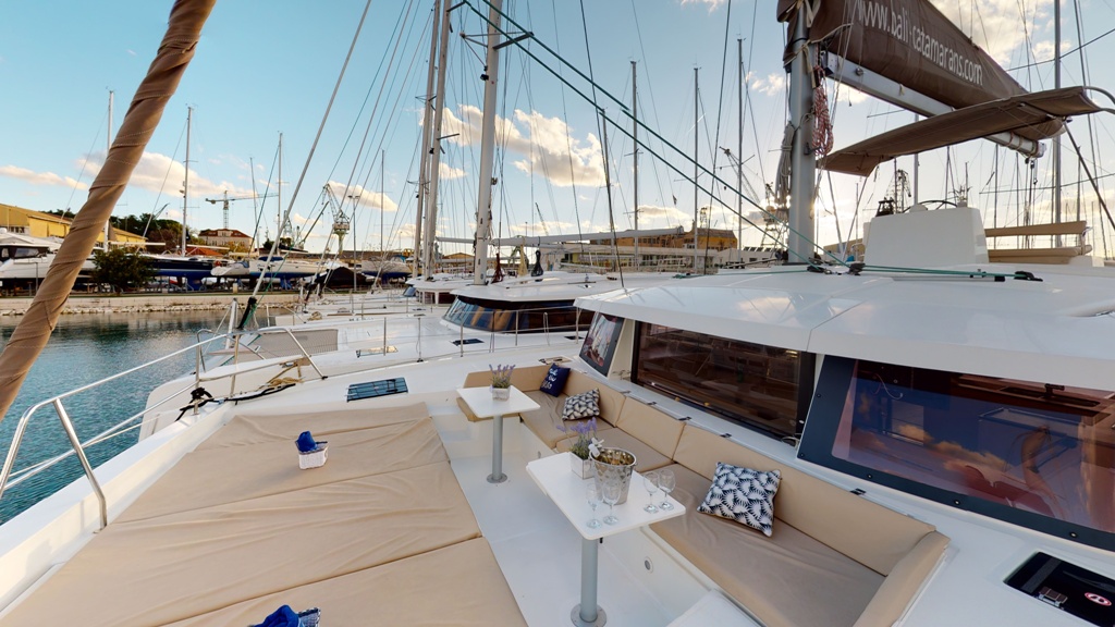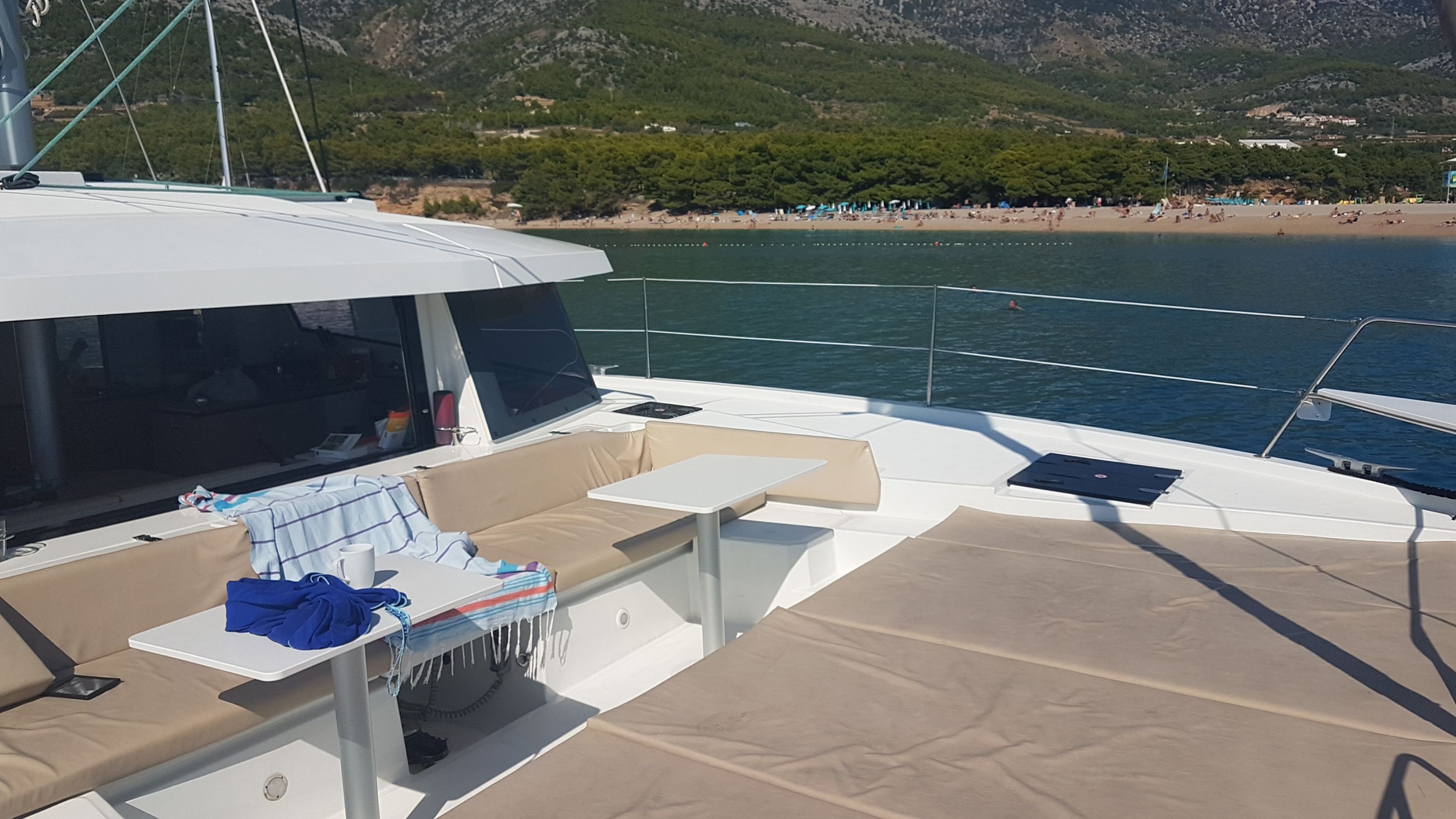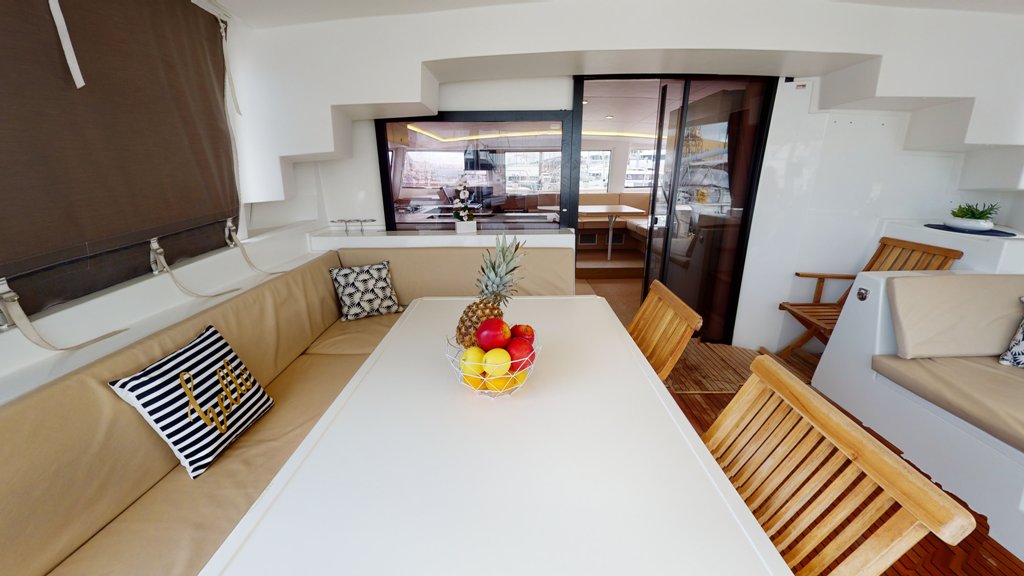 | Outside | 220 V-Landanschluss, Biminitop auf Flybridge, Bootshaken, Cockpitdusche, Cockpitlautsprecher, Cockpitpolster, Cockpittisch (klappbar), Deckpolster, Delta-Anker, elektr. Ankerwinsch, elektr. Winsch, Fender, Festmacherleinen, Flybridge, Hardtop, hydraul. Gangway, Jambo Anker, Kugelfender, Sonnendeck, Teak im Cockpit, Unterwasserbeleuchtung, Wasserschlauch, Winschen |
