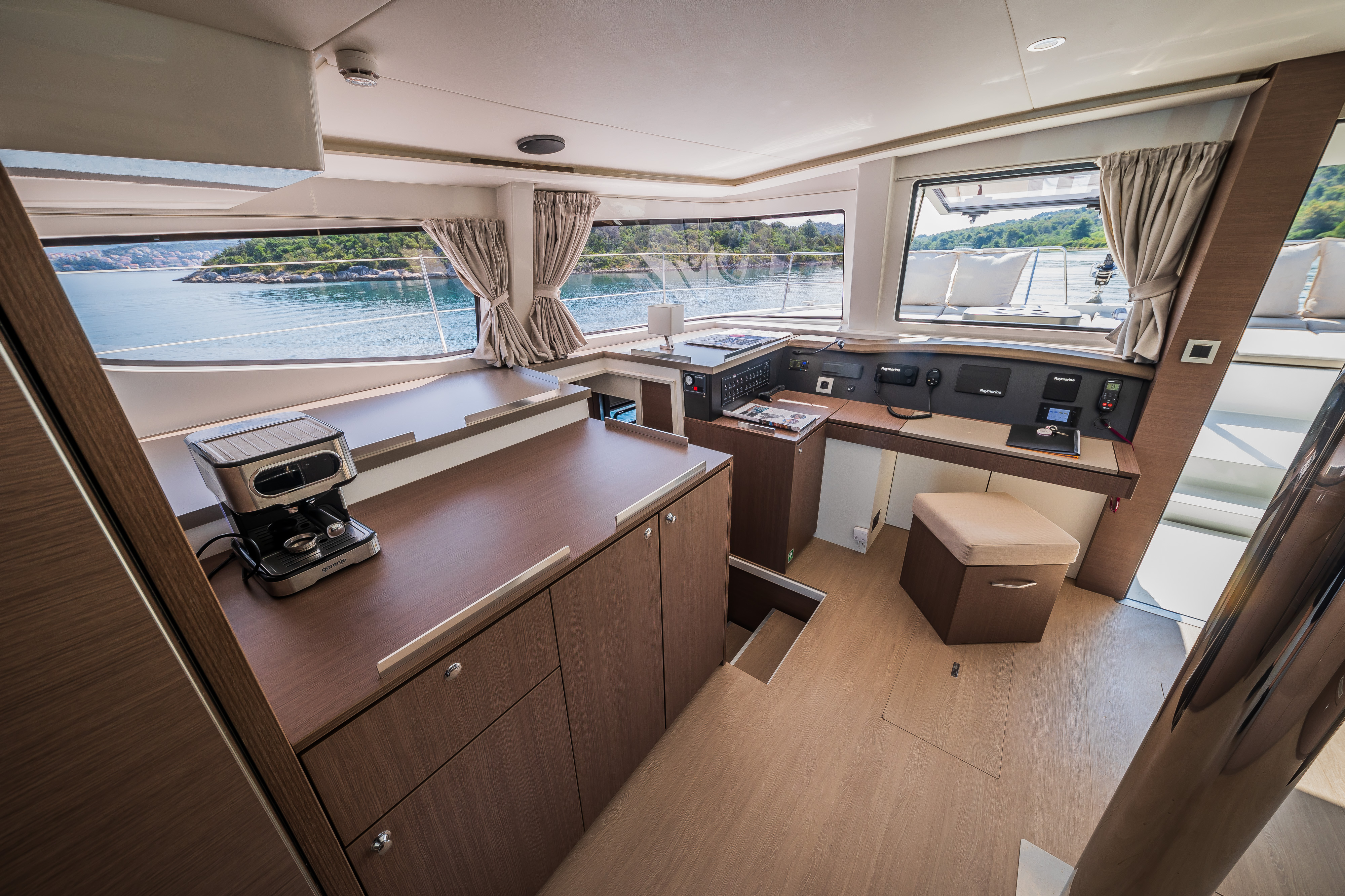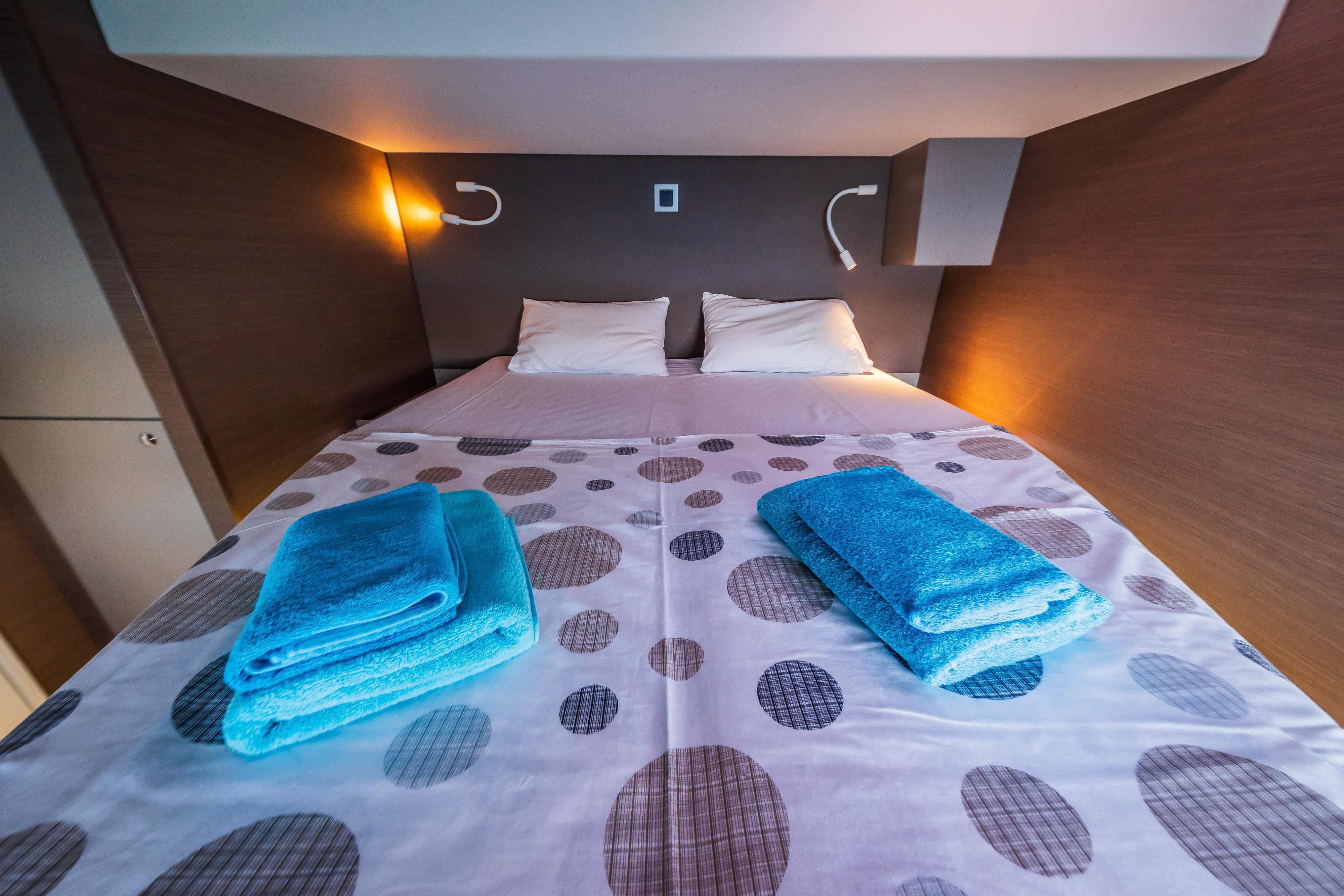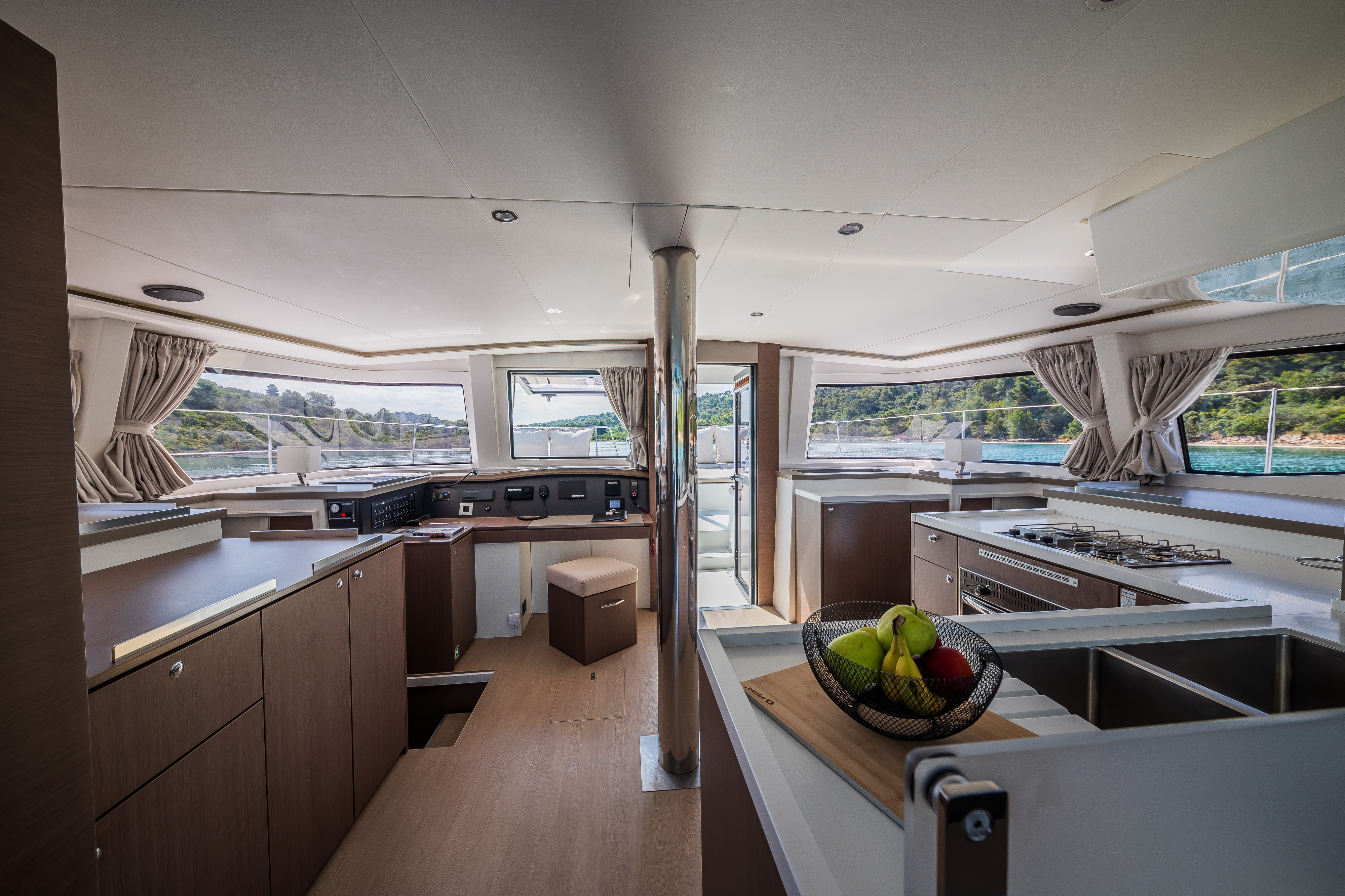 Inside Eiswürfelmaschine, Gasherd, Gefrierschrank, Generator, Heizung, Inverter 12V/220V, Klimaanlage (ohne Landstrombedarf), Kühlschrank, Ladegerät, Pantryausstattung, Radio mit CD und MP3, TV, Ventilatoren in Kabinen, Warmwasser, WC (elektr.)