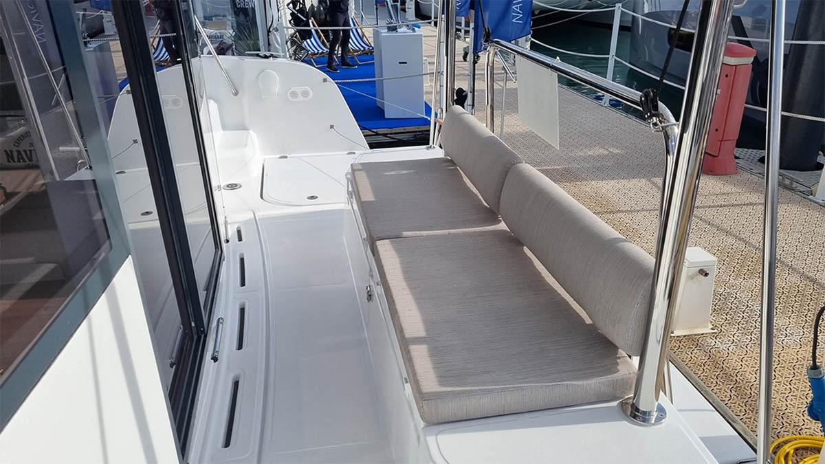 | Outside | Ankerkettenzähler, Biminitop, Cockpitkühlschrank, Cockpitlautsprecher, Cockpitpolster, elektr. Winsch, Grill, Unterwasserbeleuchtung |