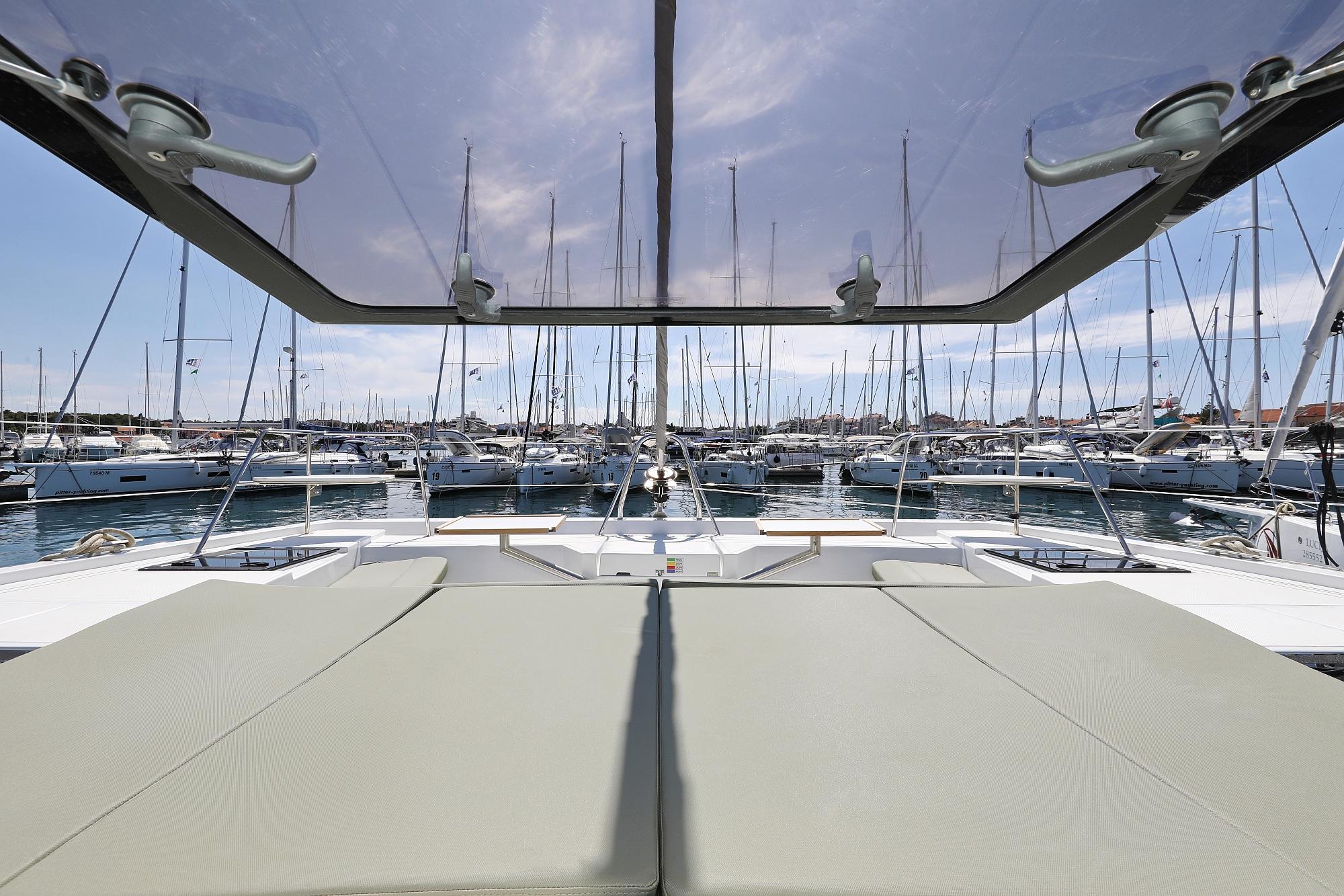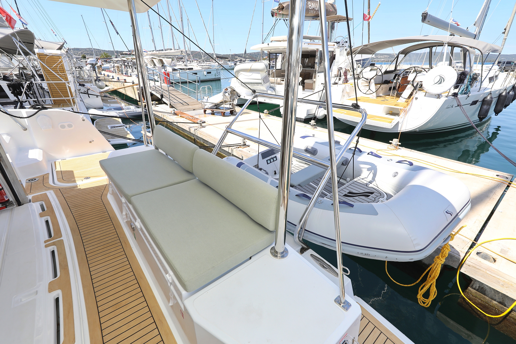 | Outside | Badeplattform, Biminitop, Cockpitdusche, Cockpitlautsprecher, Cockpittisch, Solaranlage, Sprayhood |