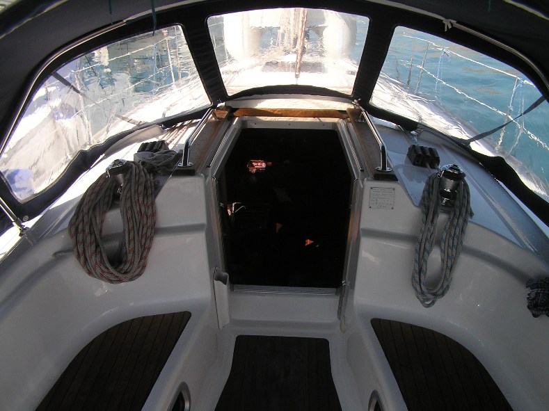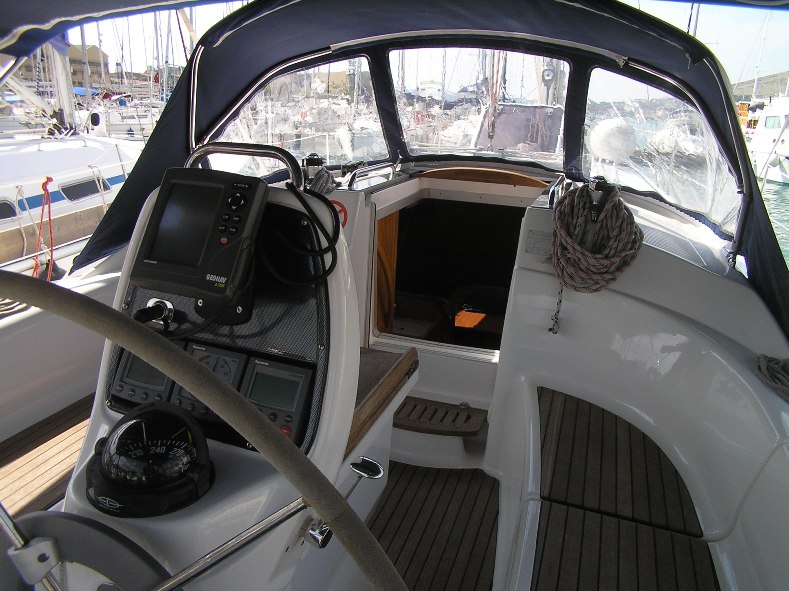 | Outside | 12 V-Anschluss, 220 V-Landanschluss, Biminitop, Bootshaken, Cockpitdusche, Cockpitlautsprecher, Cockpitpolster, Cockpittisch, Dieselkanister , elektr. Ankerwinsch, Fender, Festmacherleinen, Gangway, Kunststoff-Eimer (Pütz), Selbstholende Winschen, Solaranlage, Sprayhood, Wasserschlauch, Windex |