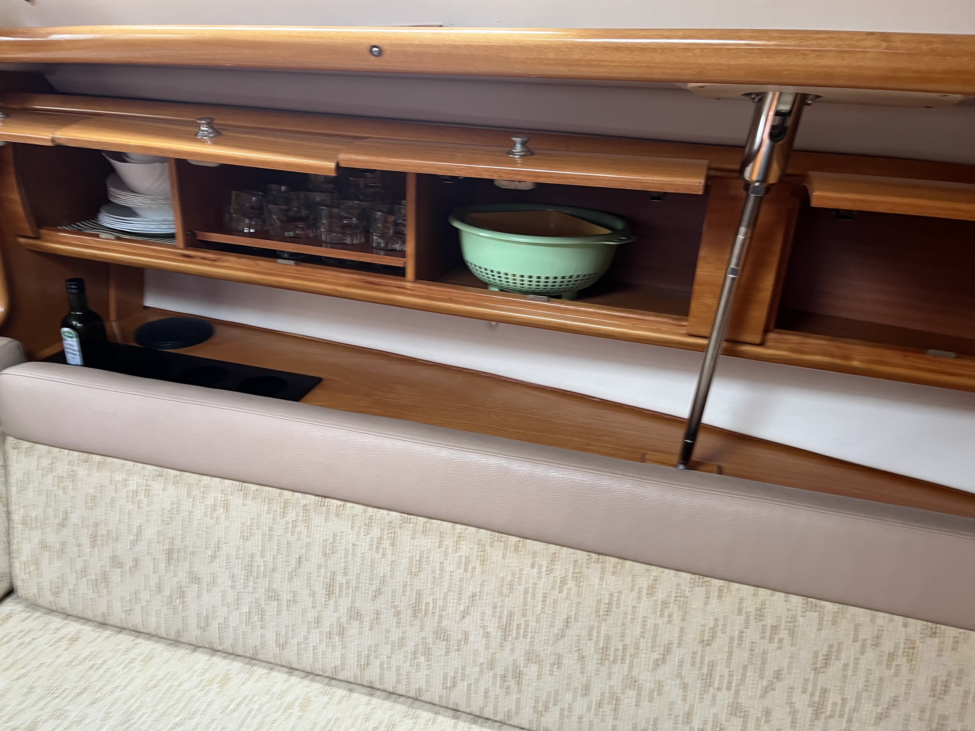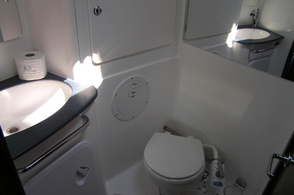 | Inside | Borduhr, Fäkalientank, Fön, Gasherd mit Backofen, Inverter 12V/220V, Kühlschrank, Ladegerät, Luftpumpe für Beiboot, Pantryausstattung, Radio mit CD, Salontisch absenkbar, Warmwasser, WC (elektr.) |