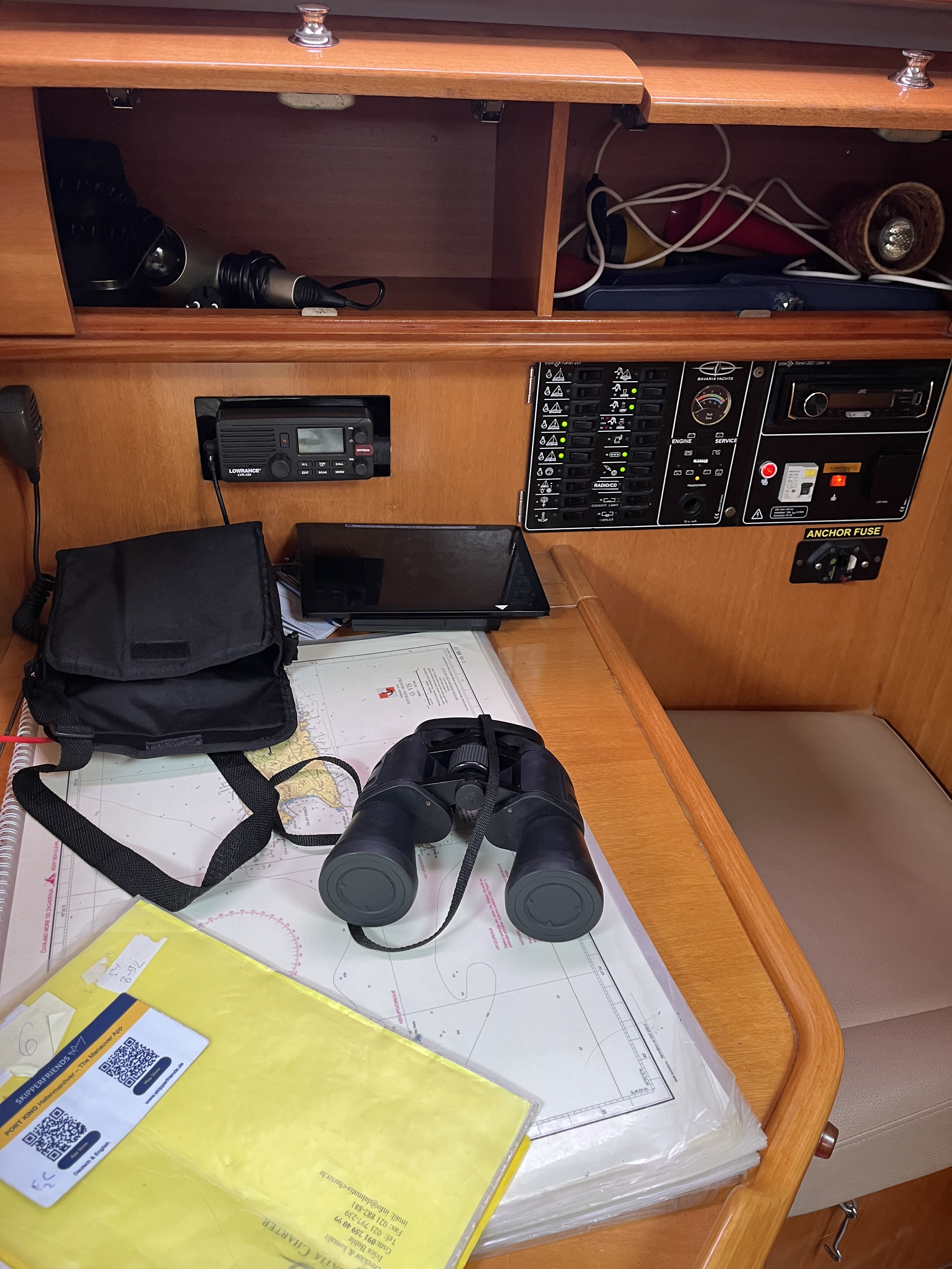 | Navigation | Echolot, Fernglas, Handpeilkompass, iPad, iPad mit Navionics, Seekarten |
