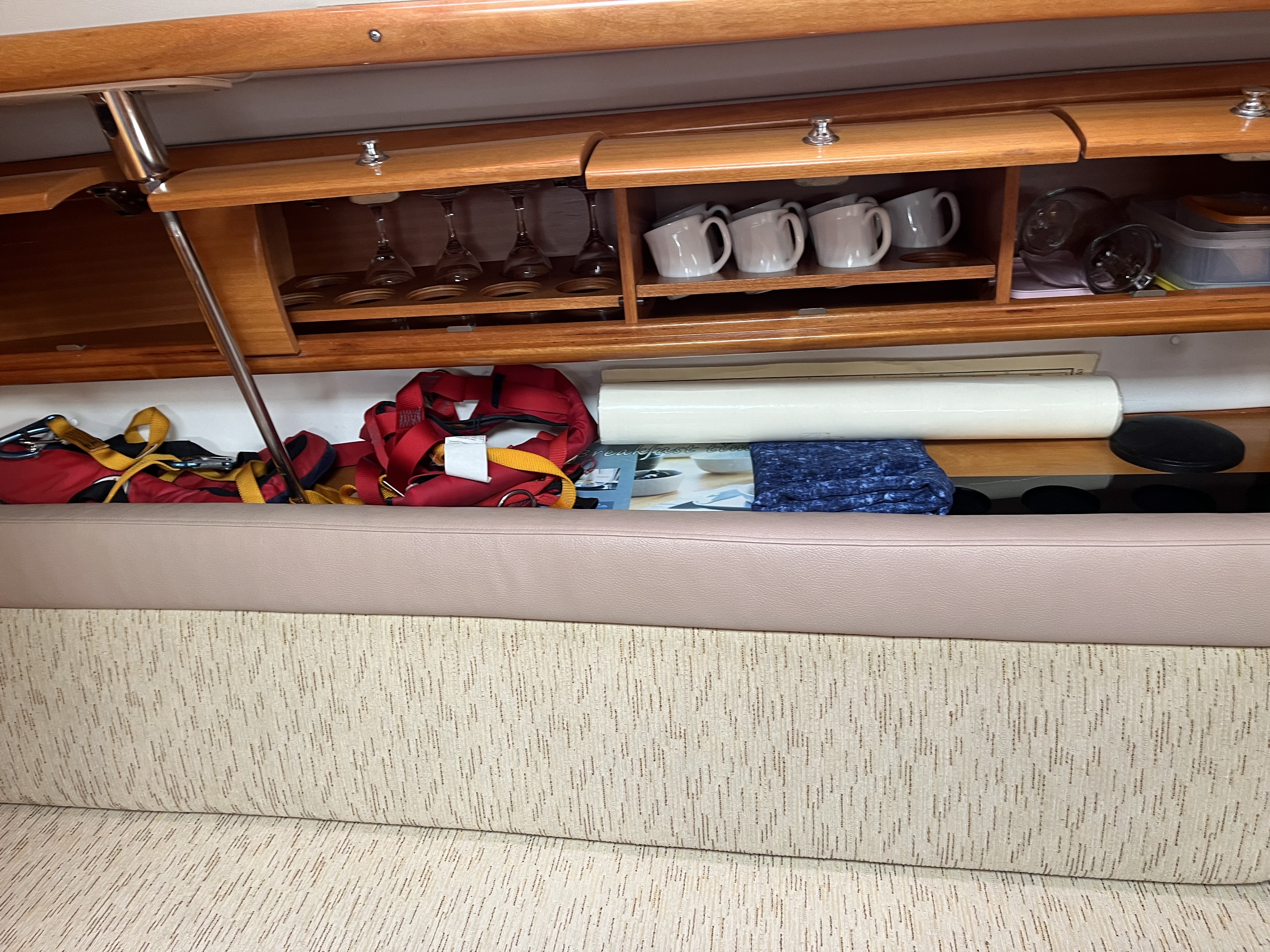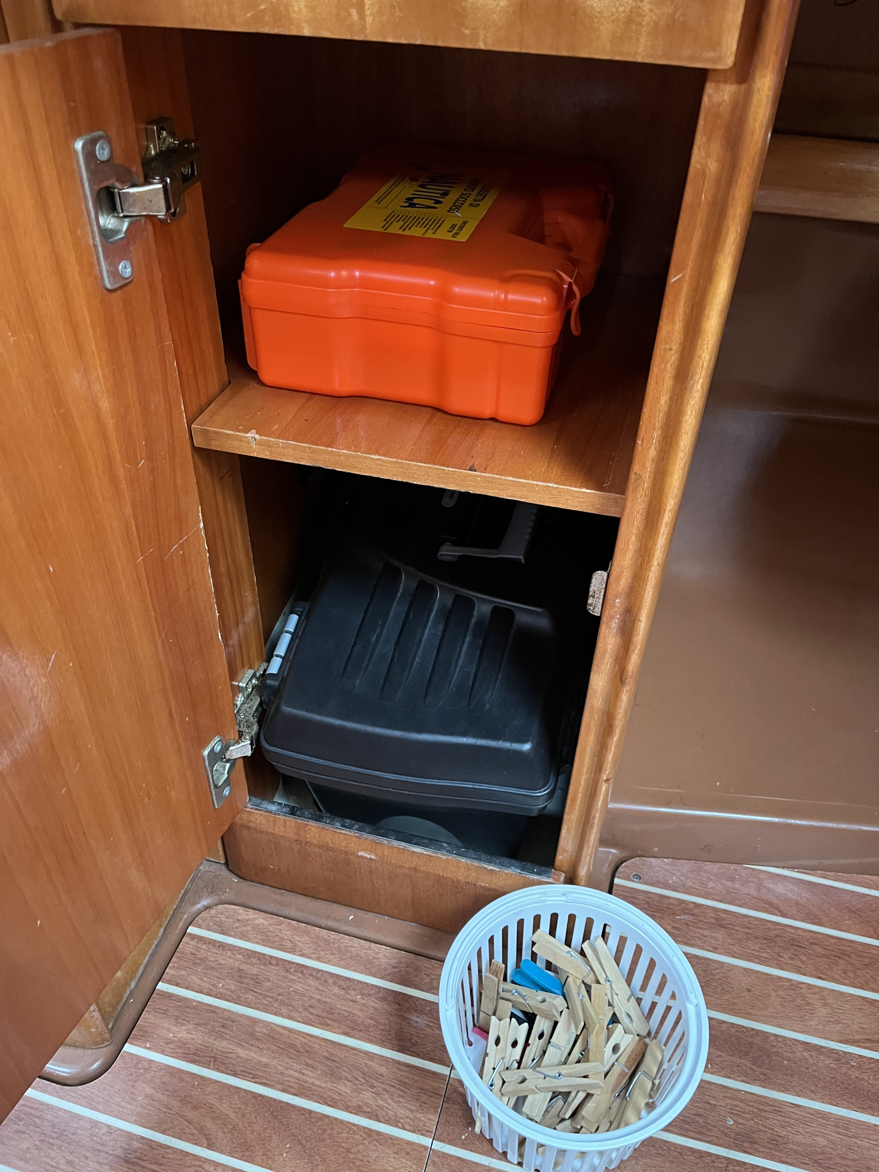 | Safety | Automatikwesten, Autopilot, Bordapotheke, Bordwerkzeug, elektr. Bilgepumpe, Feuerlöscher, Handbilgepumpe, Lifebelts, Nebelhorn, Notsignale, Taschenlampe, UKW-Funk, Zweitanker |