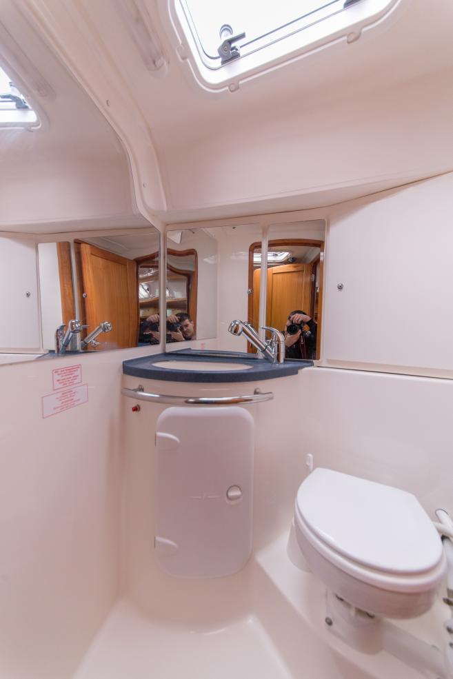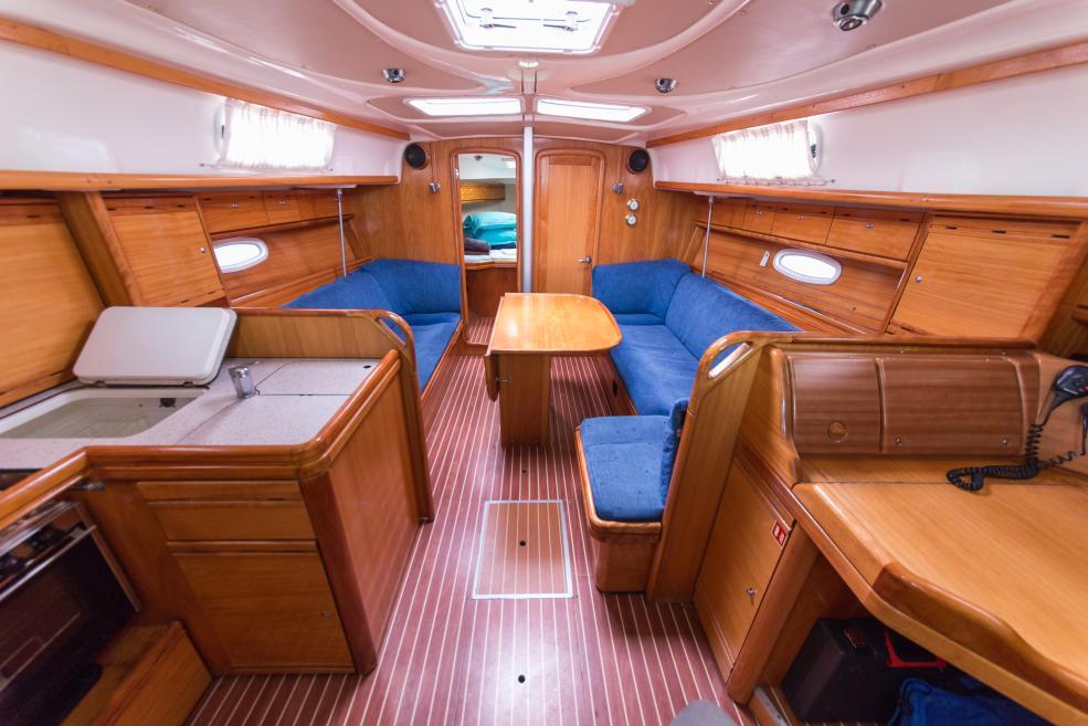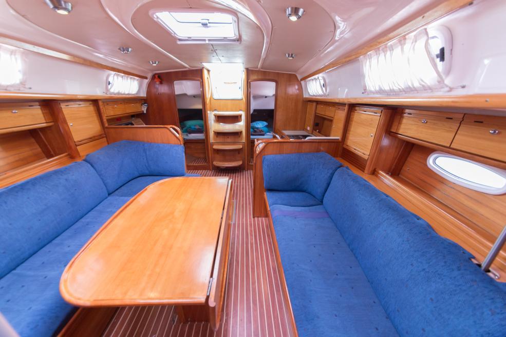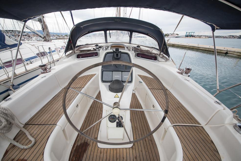 | Outside | Badeleiter, Biminitop, Cockpitdusche, Cockpitlautsprecher, Cockpittisch, elektr. Ankerwinsch, Sprayhood, Teak im Cockpit |