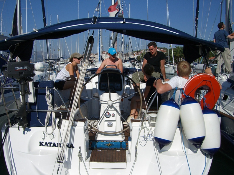 Zur Bewertung des Boote Katarina ist nur festzuhalten, dass der Cockpittisch gerade für 4 Personen ausreicht, der Holdingtank fehlt ( das ist beim ankern oder Bodenliegen in Buchten schwierig). Die Bugkabine ist durch den Schnitt des Bootes ( Toilette ist vorne und nimmt einem Teil der Bugkabine den Platz) für zwei Personen nur schwer nutzbar.