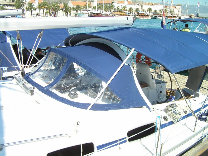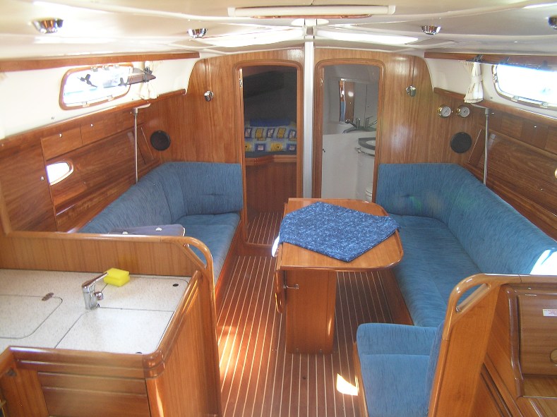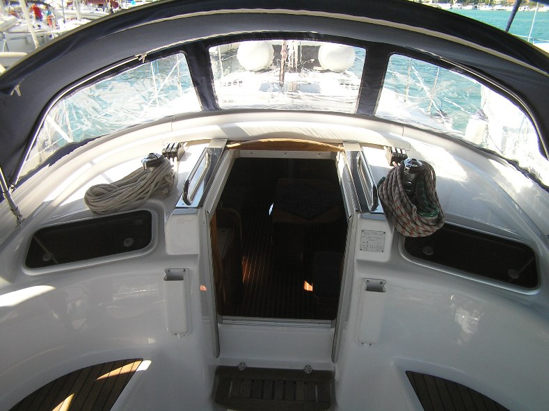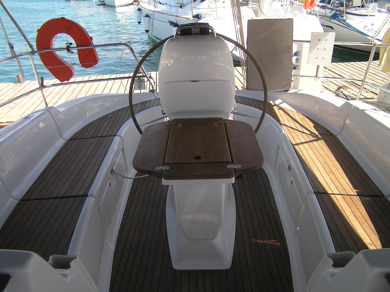 | Outside | 12 V-Anschluss, 220 V-Landanschluss, Biminitop, Bootshaken, Cockpitdusche, Cockpitpolster, Cockpittisch, Dieselkanister , elektr. Ankerwinsch, Fender, Festmacherleinen, Gangway, Kunststoff-Eimer (Pütz), Selbstholende Winschen, Solaranlage, Sprayhood, Wasserschlauch, Windex |