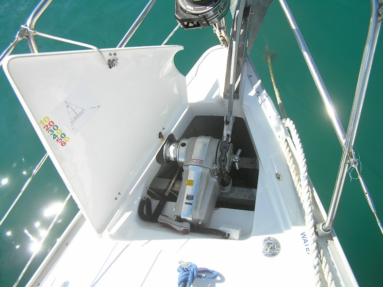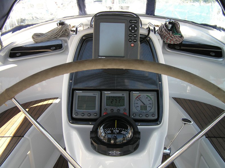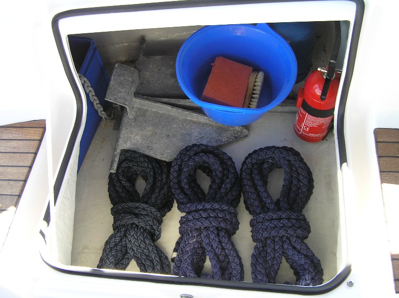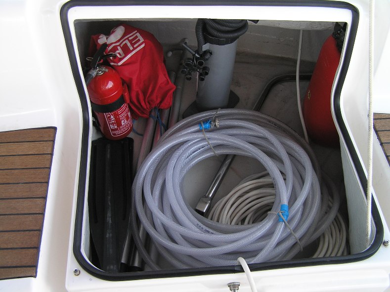 | Safety | Automatikwesten, Autopilot, Bordapotheke, Bordwerkzeug, elektr. Bilgepumpe, Feuerlöscher, Handbilgepumpe, Lifebelts, Nebelhorn, Notsignale, Taschenlampe, UKW-Funk, Zweitanker |