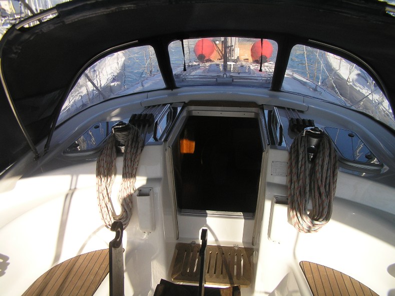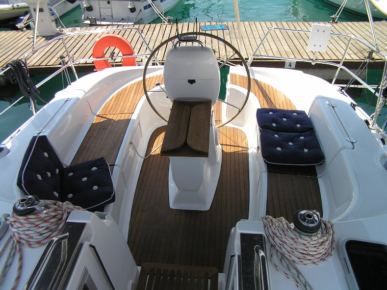 | Outside | 12 V-Anschluss, 220 V-Landanschluss, Biminitop, Bootshaken, Cockpitdusche, Cockpitlautsprecher, Cockpitpolster, Cockpittisch, Dieselkanister , elektr. Ankerwinsch, Fender, Festmacherleinen, Gangway, Kunststoff-Eimer (Pütz), Selbstholende Winschen, Solaranlage, Sprayhood, Wasserschlauch, Windex |
