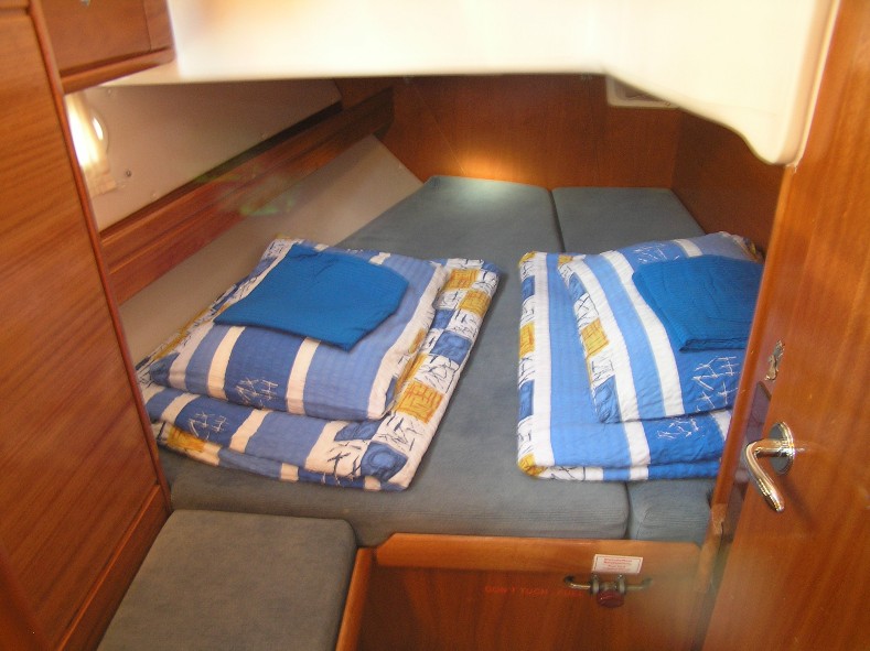 | Safety | Automatikwesten, Autopilot, Bordapotheke, Bordwerkzeug, Bugstrahlruder, elektr. Bilgepumpe, Feuerlöscher, Handbilgepumpe, Lifebelts, Nebelhorn, Notsignale, Taschenlampe, UKW-Funk, Zweitanker |
