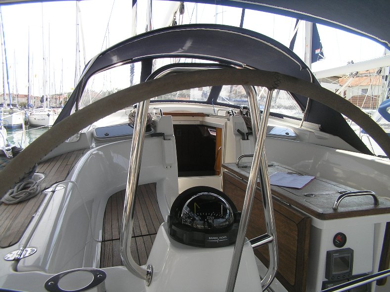 | Outside | 12 V-Anschluss, 220 V-Landanschluss, Biminitop, Bootshaken, Cockpitdusche, Cockpitlautsprecher, Cockpitpolster, Cockpittisch, Dieselkanister , elektr. Ankerwinsch, Fender, Festmacherleinen, Gangway, Kunststoff-Eimer (Pütz), Selbstholende Winschen, Solaranlage, Sprayhood, Wasserschlauch, Windex |