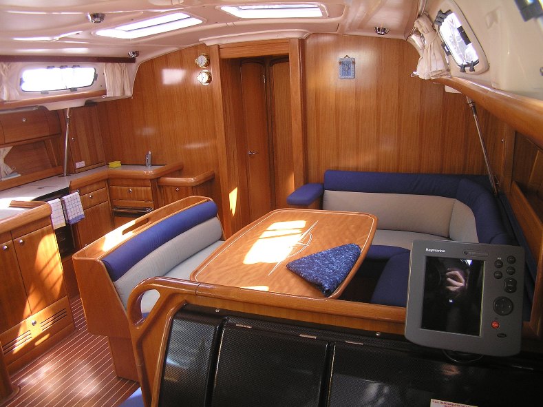 | Safety | Automatikwesten, Autopilot, Blitzboje, Bordapotheke, Bordwerkzeug, Bugstrahlruder, elektr. Bilgepumpe, Feuerlöscher, Handbilgepumpe, Lifebelts, Nebelhorn, Notsignale, Rettungsinsel, Taschenlampe, UKW-Funk, Zweitanker |