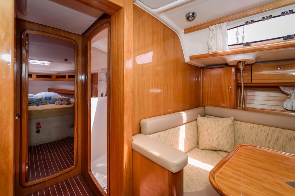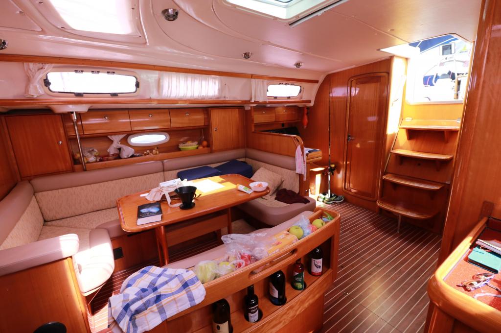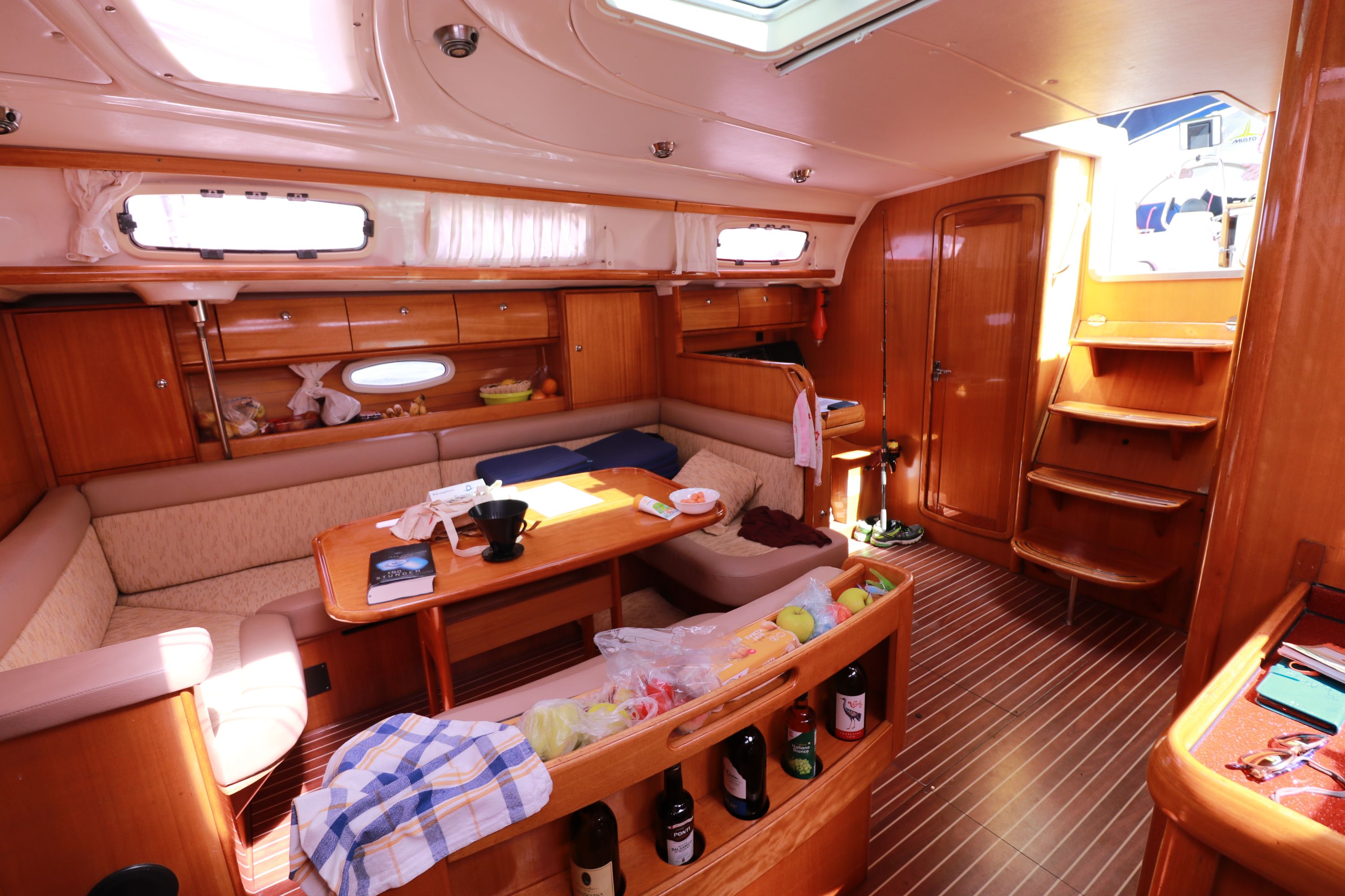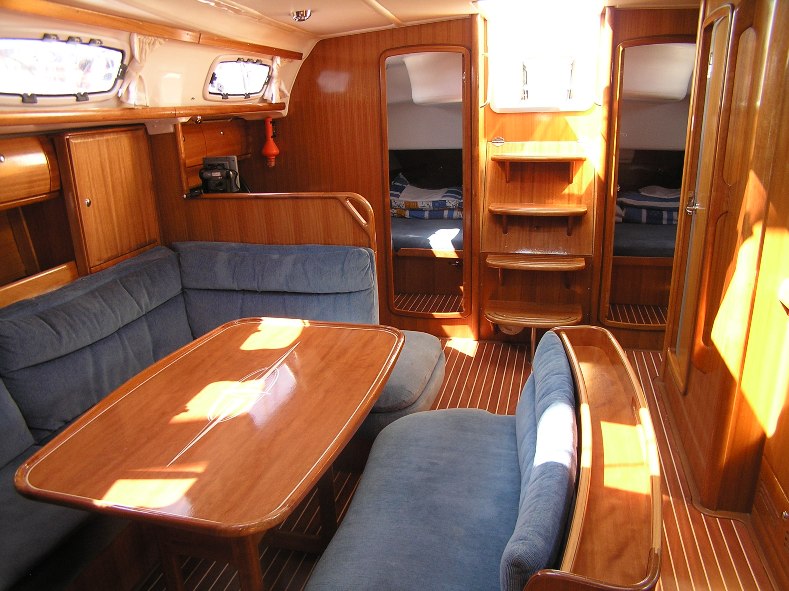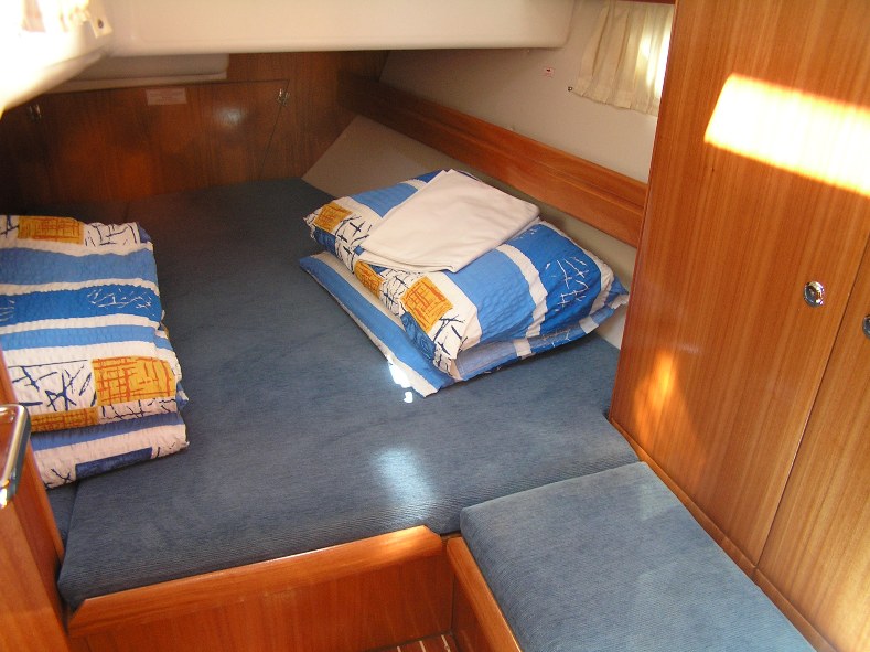 | Safety | Automatikwesten, Autopilot, Blitzboje, Bordapotheke, Bordwerkzeug, Bugstrahlruder, elektr. Bilgepumpe, Feuerlöscher, Handbilgepumpe, Lifebelts, Nebelhorn, Notsignale, Rettungsinsel, Taschenlampe, UKW-Funk, Zweitanker |