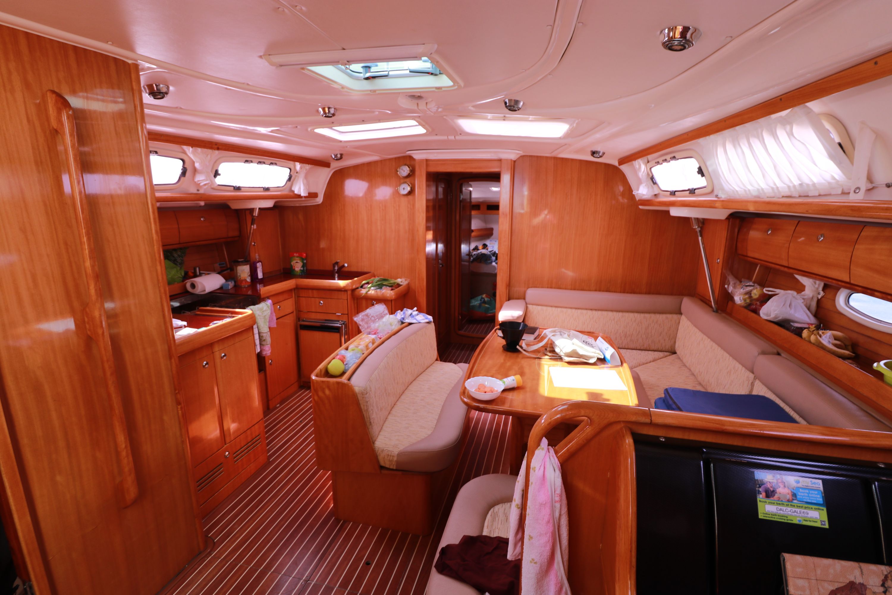 | Inside | Borduhr, Fäkalientank, Fön, Gasherd mit Backofen, Inverter 12V/220V, Kühlschrank, Ladegerät, Luftpumpe für Beiboot, Pantryausstattung, Radio mit CD und MP3, Warmwasser, WC (elektr.) |