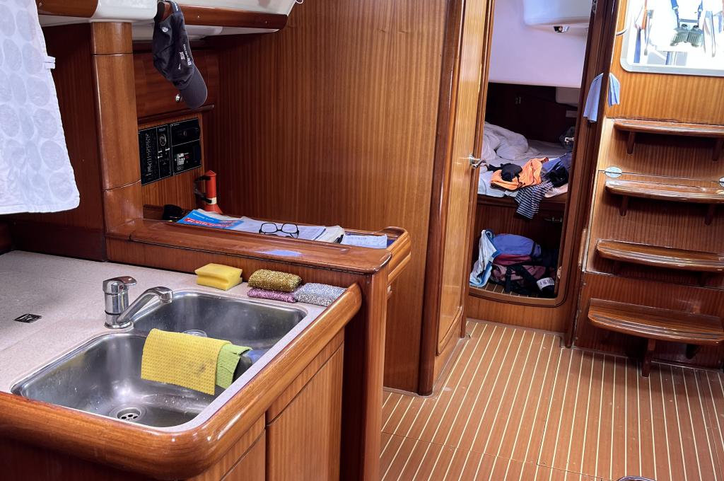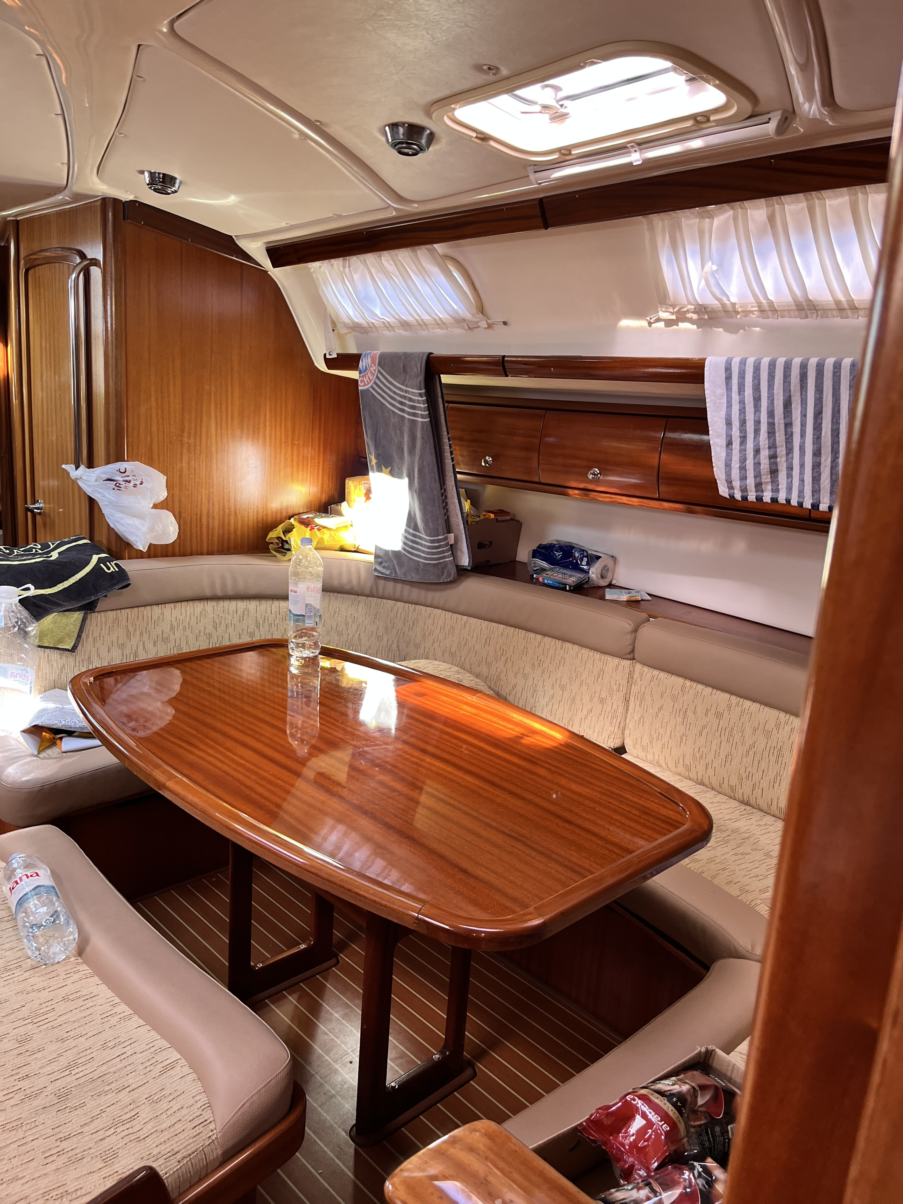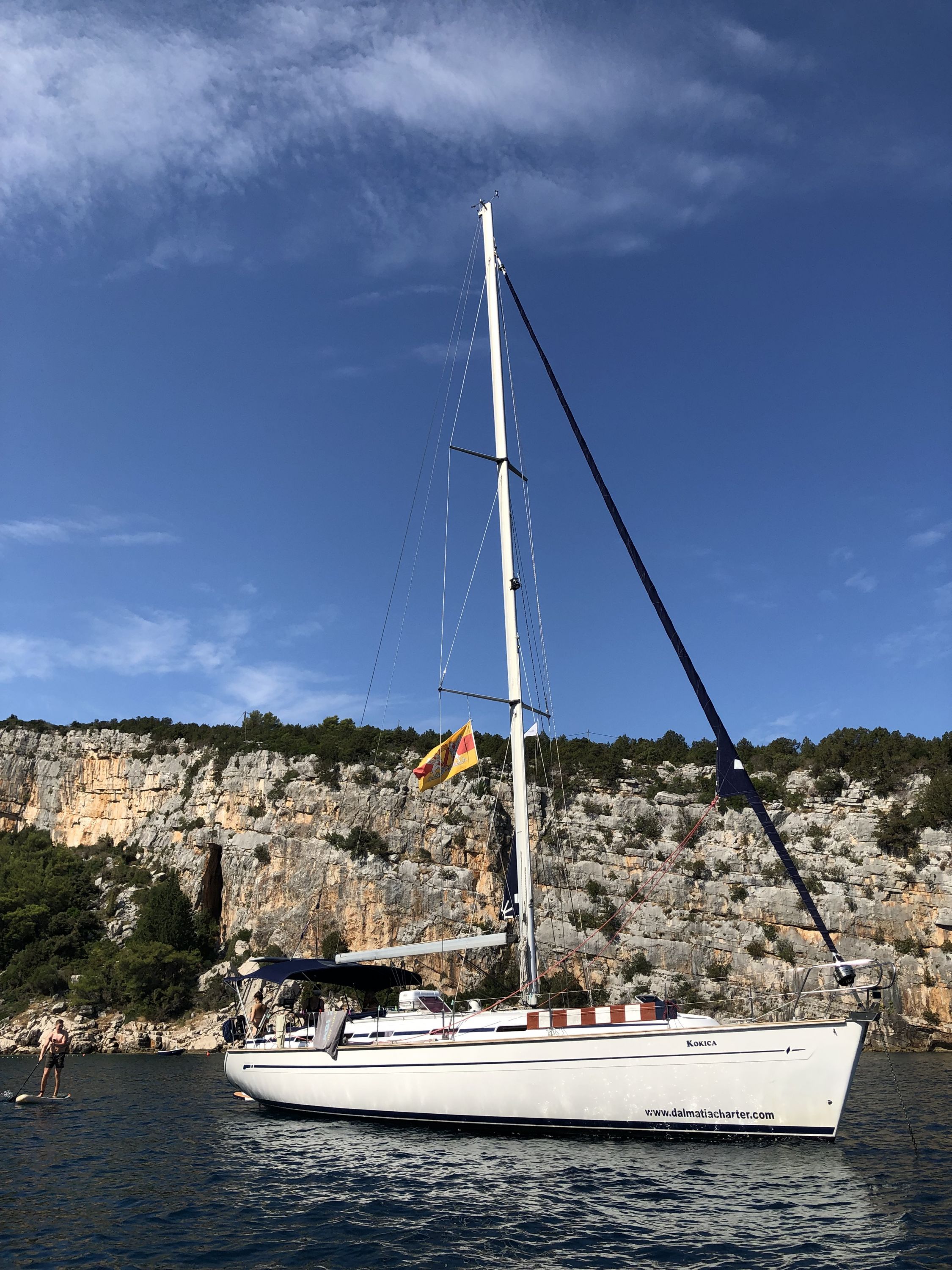 Wir hatten bereits das zweite mal das gleiche Schiff bei Dalmatia Charter gebucht. Man merkt natürlich dem Schiff das Alter (20 Jahre) an. Z.T. sind die Dichtungen bei den Fenstern oder Klopumpen nicht mehr dicht. Die Takelage ist aber in einem einwandfreien Zustand.