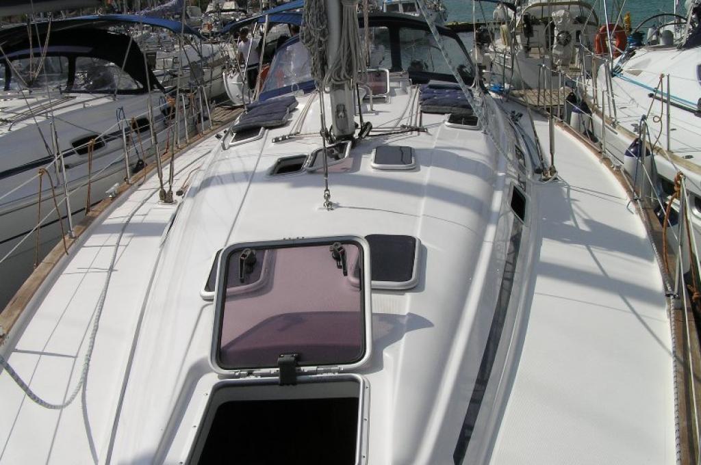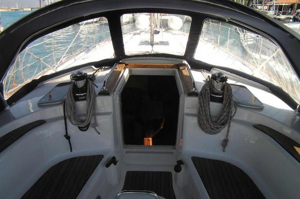 | Outside | 12 V-Anschluss, 220 V-Landanschluss, Biminitop, Bootshaken, Cockpitdusche, Cockpitlautsprecher, Cockpitpolster, Cockpittisch, Dieselkanister , elektr. Ankerwinsch, Fender, Festmacherleinen, Gangway, Kunststoff-Eimer (Pütz), Selbstholende Winschen, Solaranlage, Sprayhood, Teak im Cockpit, Wasserschlauch, Windex |