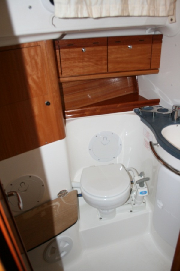 | Outside | 220 V-Landanschluss, Biminitop, Cockpitlautsprecher, Cockpittisch, elektr. Ankerwinsch, Heckdusche, Sprayhood, Windex |